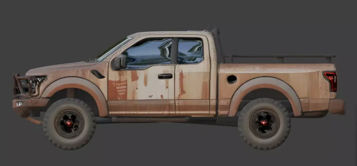 The asset is engineered using a high-quality PBR (Physically Based Rendering) workflow, meticulously capturing the textures of oxidized metal, pitted iron, and sun-damaged paint. It is ideal for use in AAA game environments, cinematic wasteland renders, or automotive design showcases.