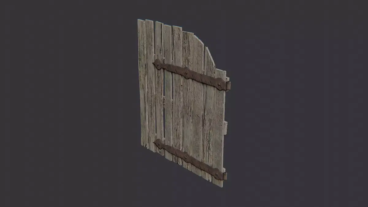 This weathered wooden arch gate adds rustic character to exterior scenes such as gardens, farms, or historic courtyards. It features aged planks, subtle wood grain, and metal rivet details that enhance realism under light and shadow. The model is cleanly UV mapped with separate wood and metal materials for easy texturing and replacement in architectural visualizations or concept art.