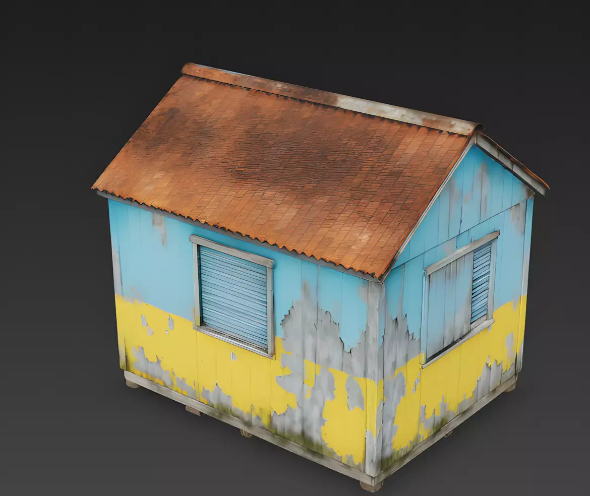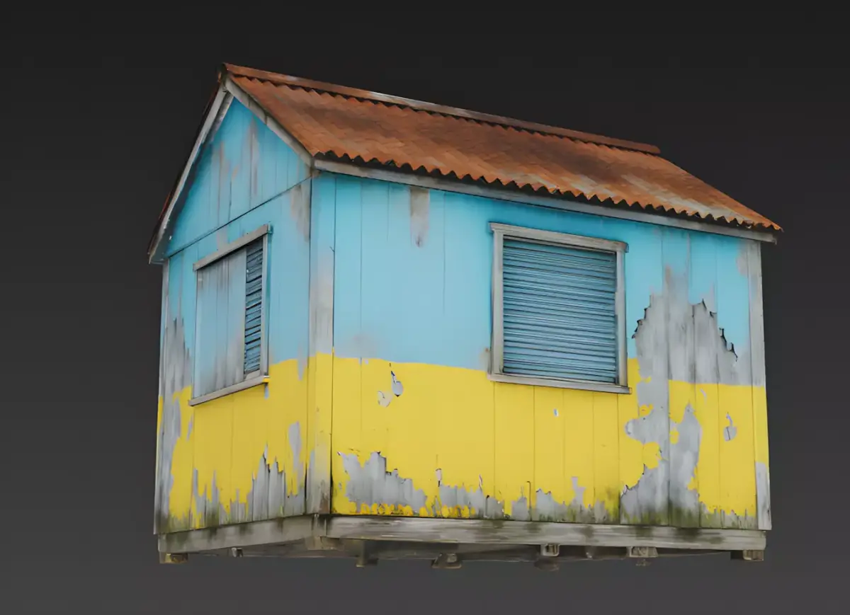 Files Included: FBX, GLB, OBJ, STL, ZIP (Textures). Quick Tip: The Peeling Paint texture is very detailed. In your game engine, use Vertex Painting to blend sand or dirt onto the bottom yellow planks, making the shack look like it is sinking slightly into the beach.