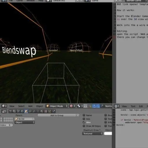 How it works:Start the Blender Game Engine by pressing the P-key during the mouse cursor is over the 3d-view-window!!!Now walk into a wire mesh object and the defined internet-address will open.