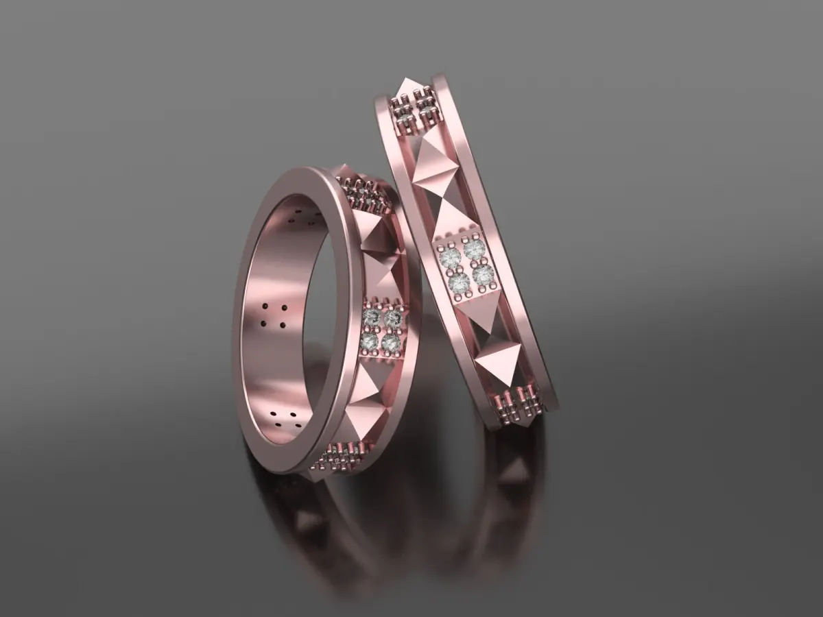 Modern and Geometric: Pyramid wedding bands have a contemporary look with clean lines and geometric shapes.Unique and Eye-Catching: This design stands out from traditional wedding bands, making it a statement piece.Versatile: Pyramid bands can complement a variety of engagement ring styles and can also be worn alone.Materials