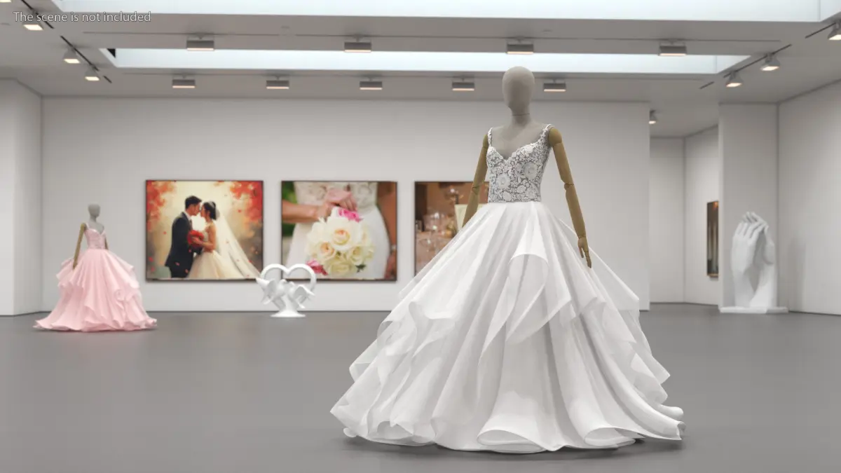 Wedding Collection 2 is a set of three-dimensional models of classic wedding set, including formal wear, featuring a tuxedo for men and a wedding gown for women, often used in wedding ceremonies and formal events.