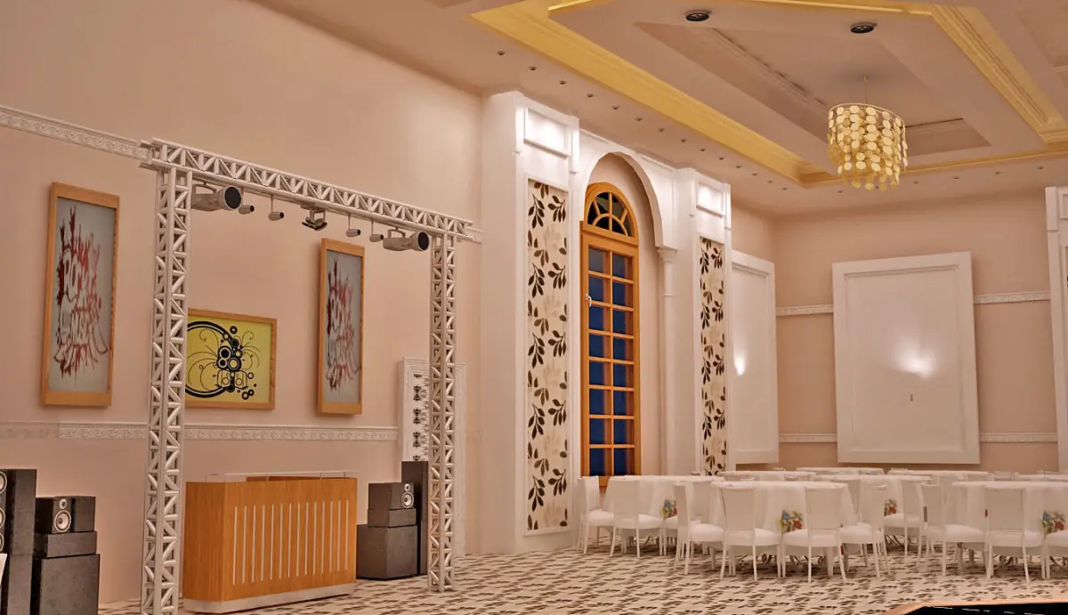 Wedding hall High detailed object modelled in 3ds Max 2015 rendered with VRay 3. The 3ds Max file contains the whole scene and is render ready.All Files and materials in File rar.