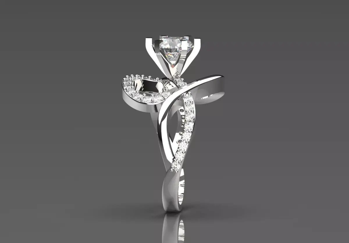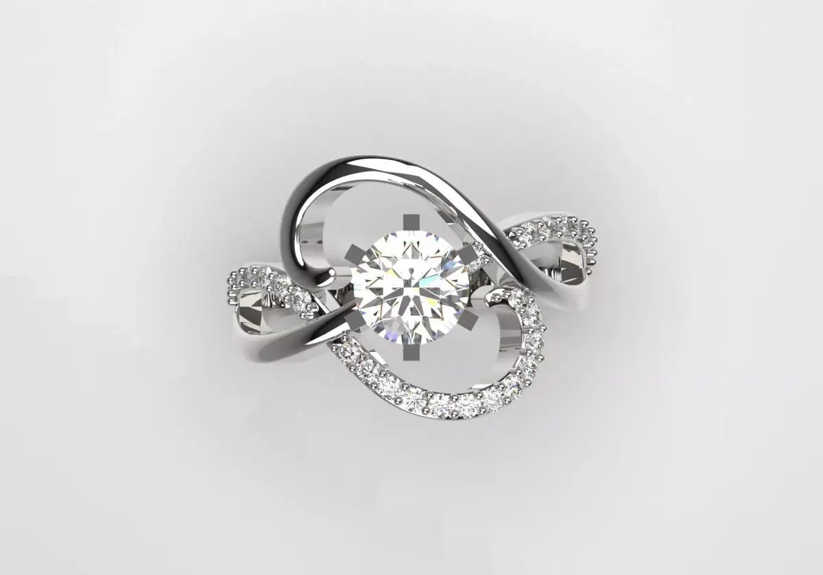 - A wavy/twisting decorative element next to the main gem that is completely covered with small gems, giving the model a fancy look.