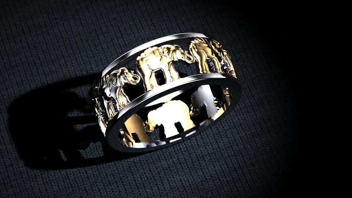 Elephant wedding,engagement ringRing size-19.5Weight yellow gold 14K-9.23 gr
