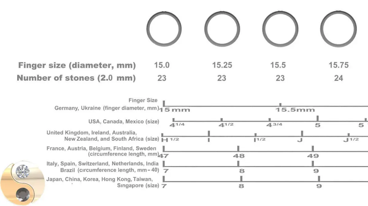- Germany, Ukraine (finger diameter), mm: 15 - 23