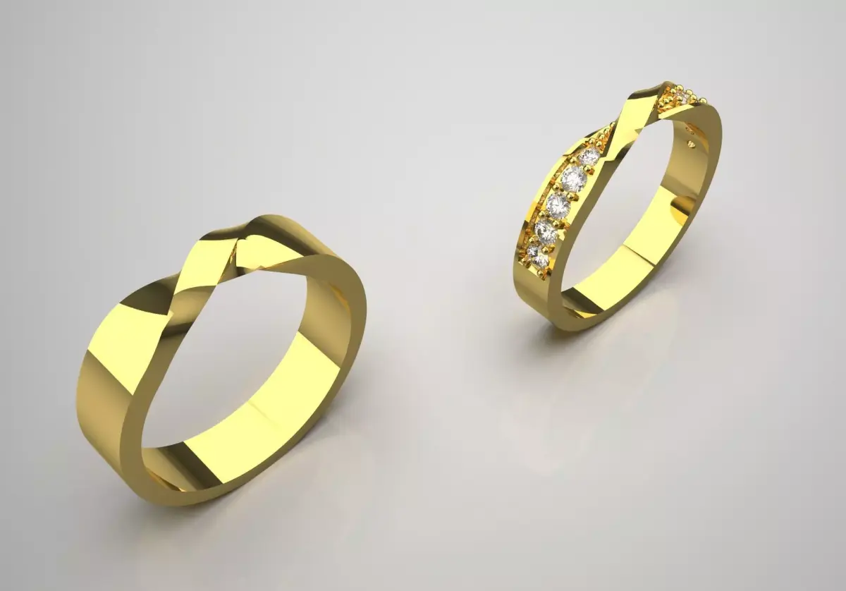Wedding Rings Set CR0022: Twisted Interlocking Wedding Band Set, a symbol of movement, unbreakable bond and sculptural designThe CR0022 set is a matching wedding band set consisting of two complementary rings with a dynamic, geometric, twisted design. This set focuses on modern simplicity, the movement of metal lines and harmony in form, offering a creative, sculptural and luxurious look.