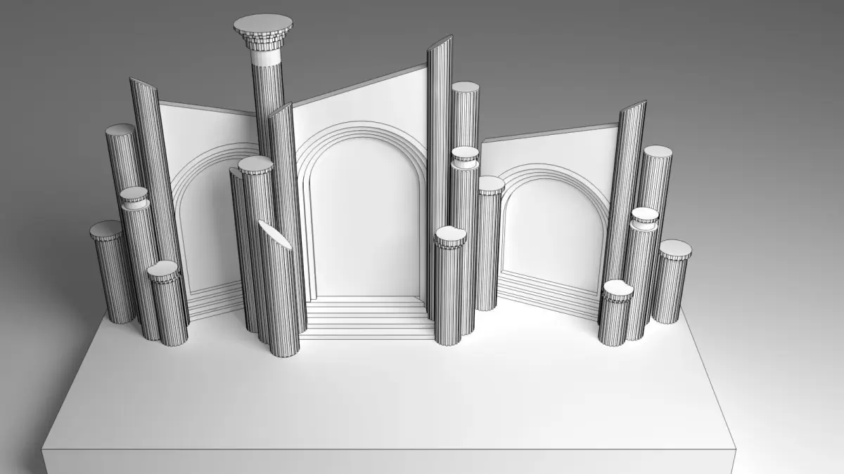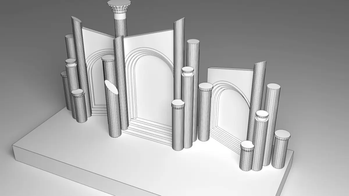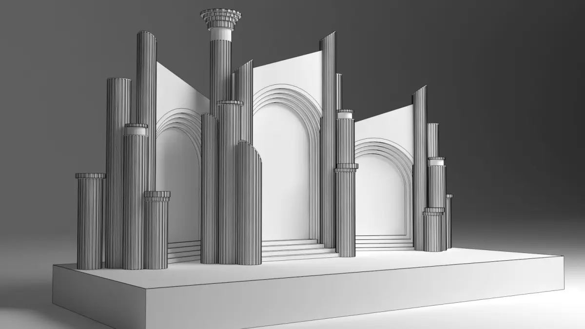 The wedding stage 3D model is a meticulously crafted digital representation designed to bring elegance and sophistication to any virtual wedding scene. The stage is set against a grand backdrop, featuring intricate floral arrangements that cascade from the top, creating a lush, romantic atmosphere. Delicate fairy lights are interwoven among the flowers, casting a soft, enchanting glow over the entire stage.