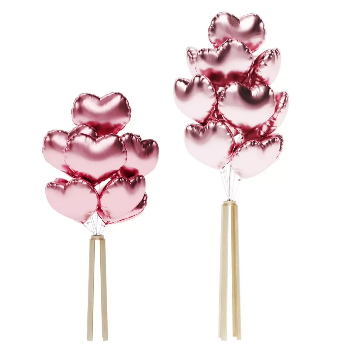 - Heart Balloons: compositions of metallic/foil heart-shaped balloons on gold stands