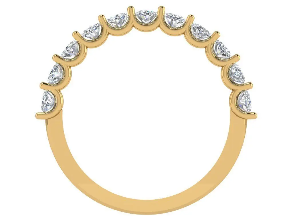 A symbol of enduring love, this wedding band features a sleek U-shaped setting that cradles each diamond or gemstone in a smooth, modern embrace. The curved design not only enhances comfort but also amplifies the stone’s brilliance, creating a seamless flow of light and luxury. Perfect for those who appreciate clean lines and understated elegance, this band offers a contemporary twist on tradition. Whether worn alone or paired with an engagement ring, it’s a timeless tribute to unity and sophistication.