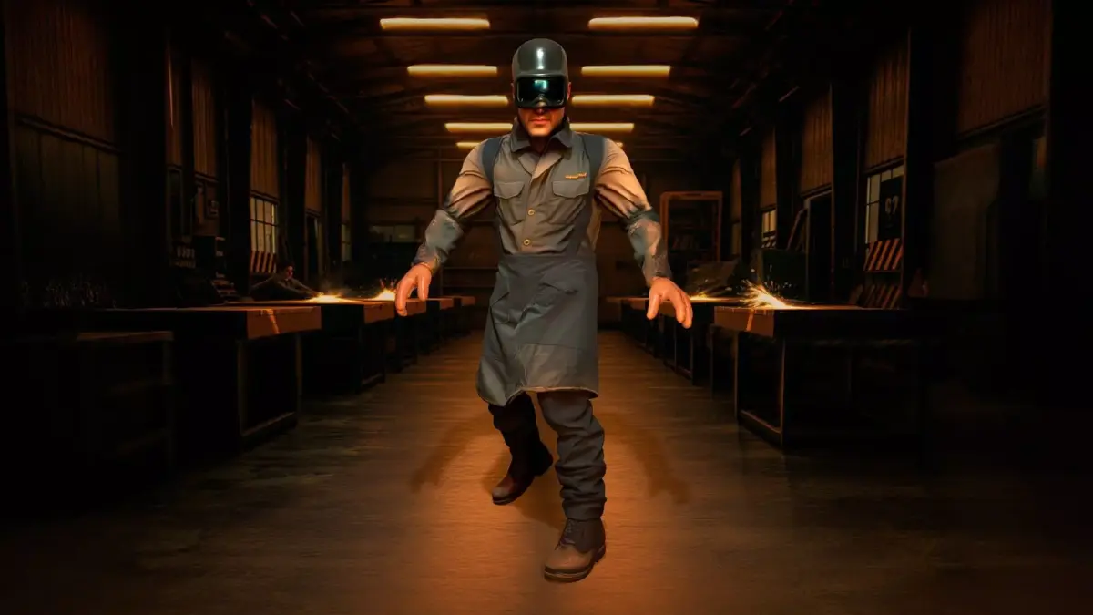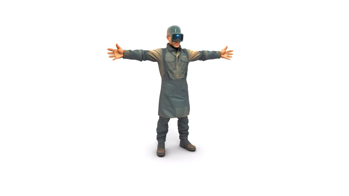 This welder character features realistic details such as a welding helmet, textured jacket, and scuffed leather apron. Each model has 3 levels of detail with QUAD polygons: