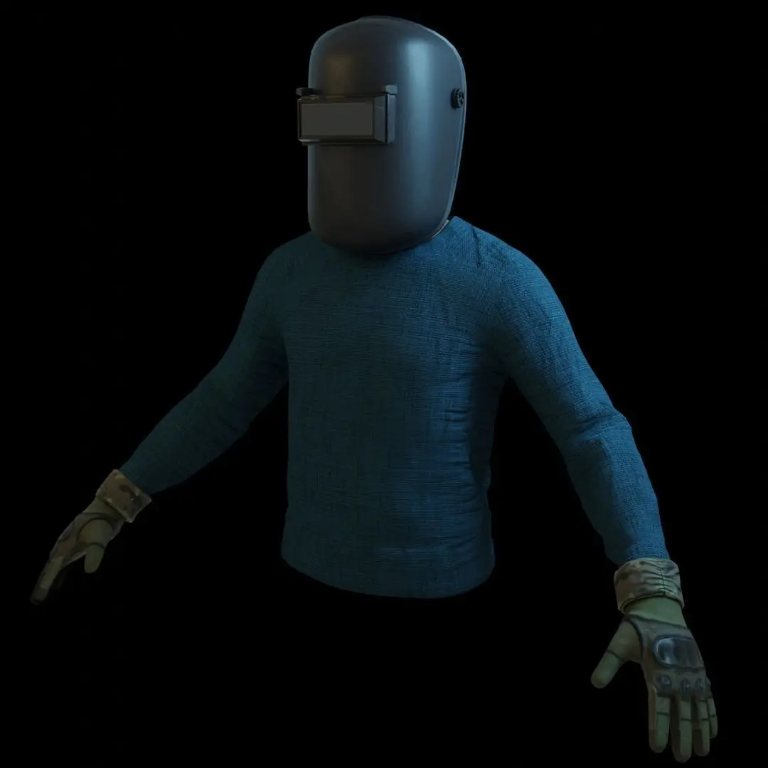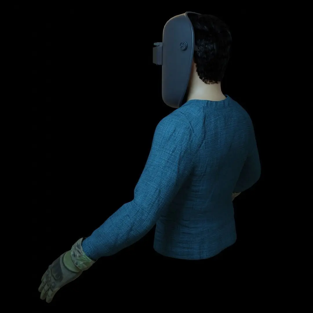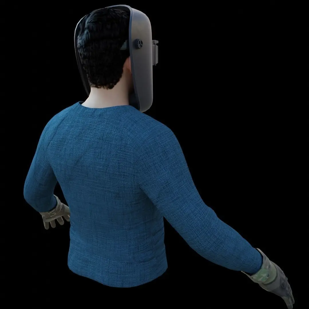 Model of a welder created in bender and rendered in cycles, the model is made up of a welding helmet, a person's face and hair, the torso and gloves, everything is textured PBR, it can be used for your videos and games, I hope it is useful