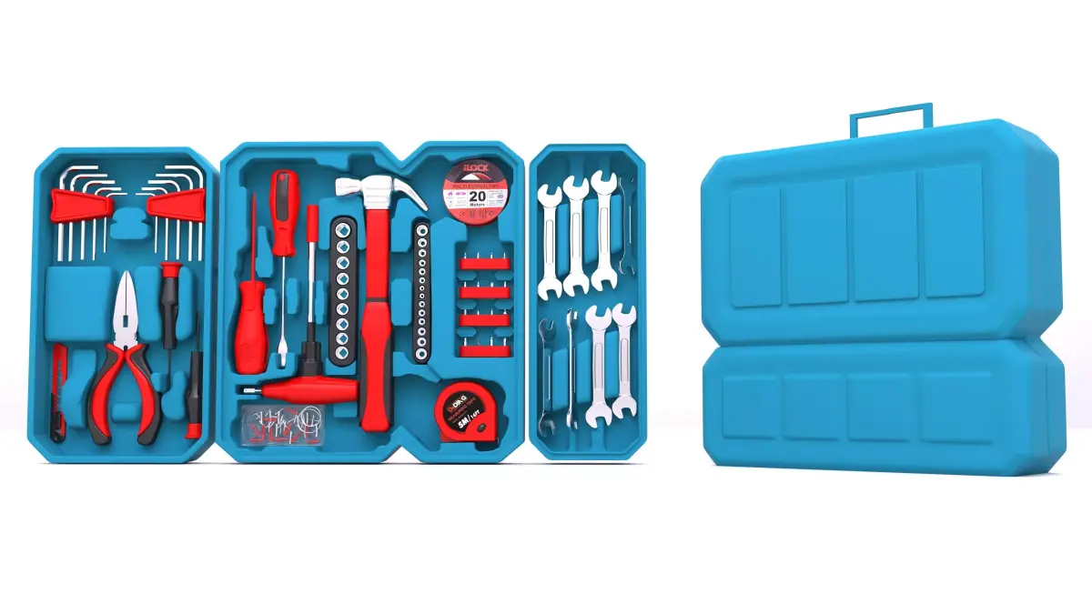 This tool kit is designedfor both professional and home use, providing a comprehensive set oftools for various tasks, from basic repairs to more complex projects.The blue case not only serves as a storage solution but also helps inkeeping the tools organized and easily accessible.