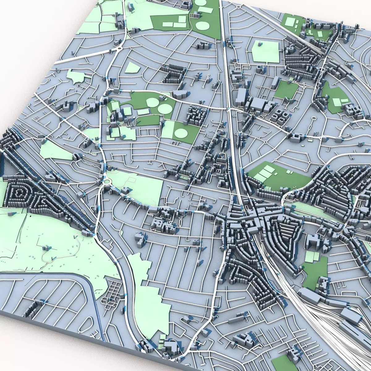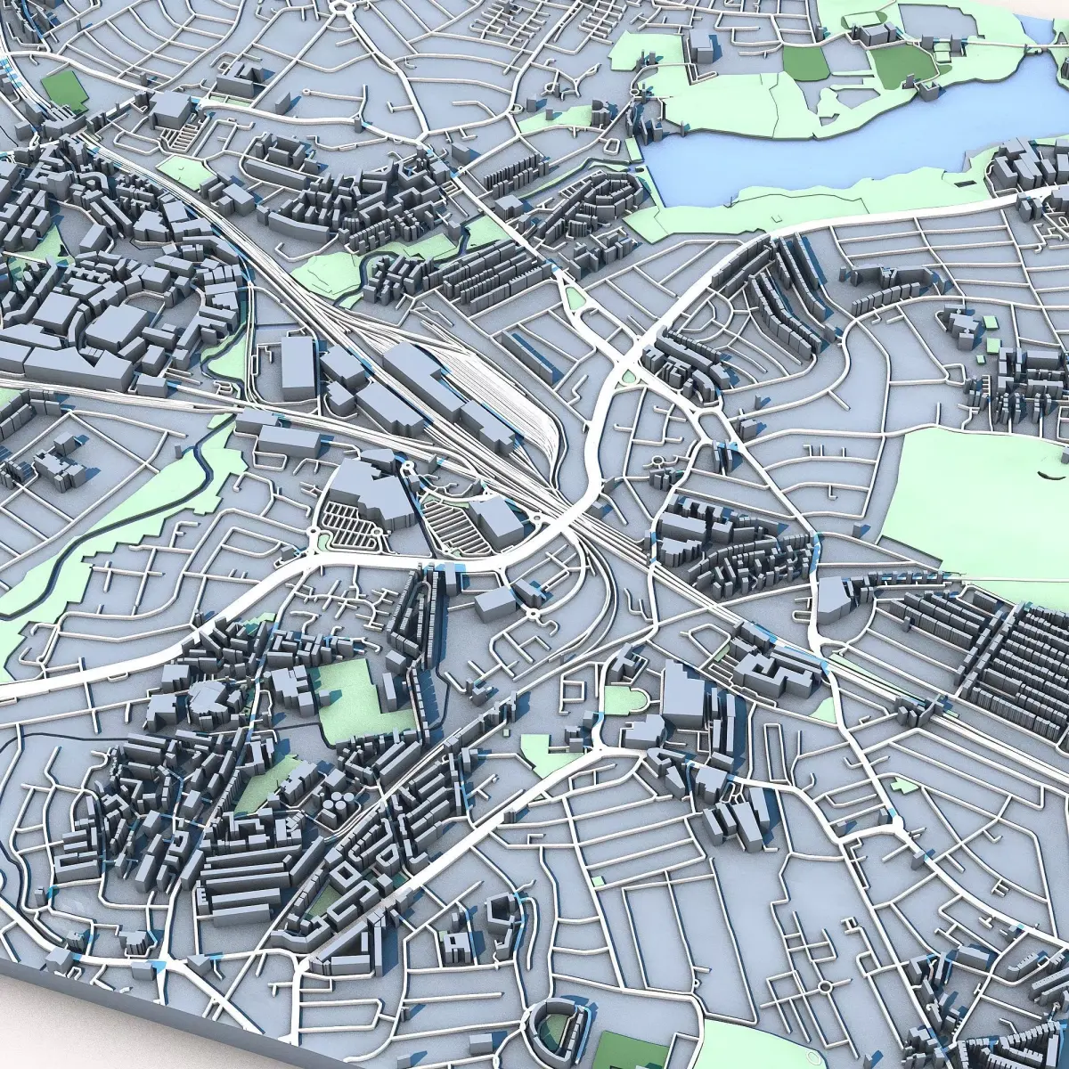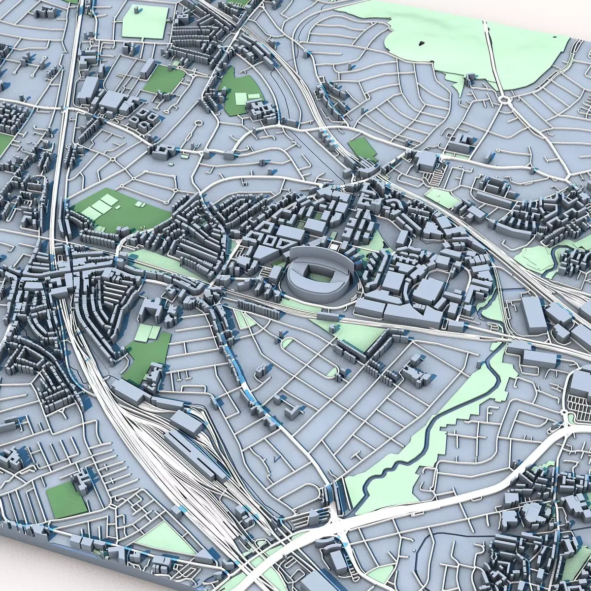 The .ZIP folder contains separate .STL files – buildings, water, vegetation, base etc.