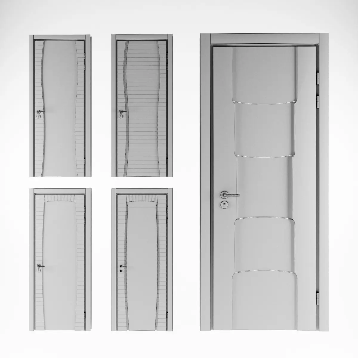 collection of Domberg doors in wenge wood, with exclusive panels and glass inserts