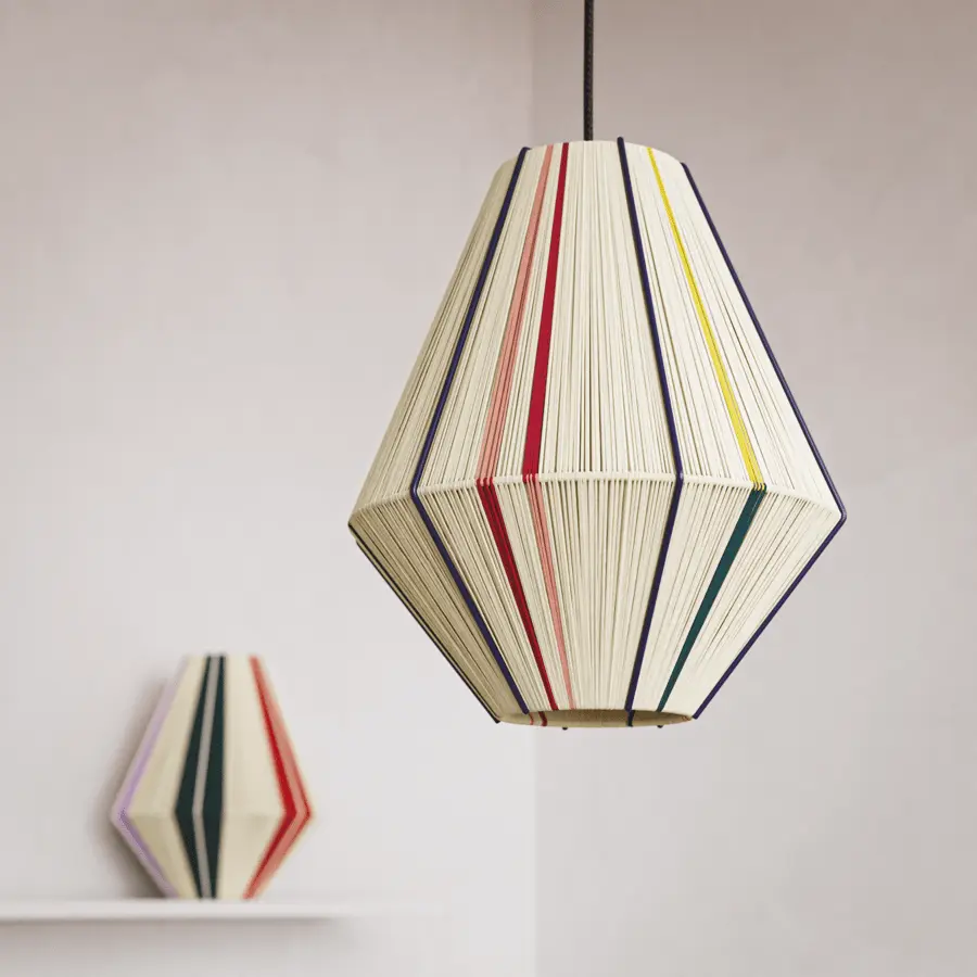 Officially licensed lamp by German boutique maker WeraJane. Made of interwoven yarn, this unique artisinal lamp is perfect for a boho chic interior or any contemporary living space.