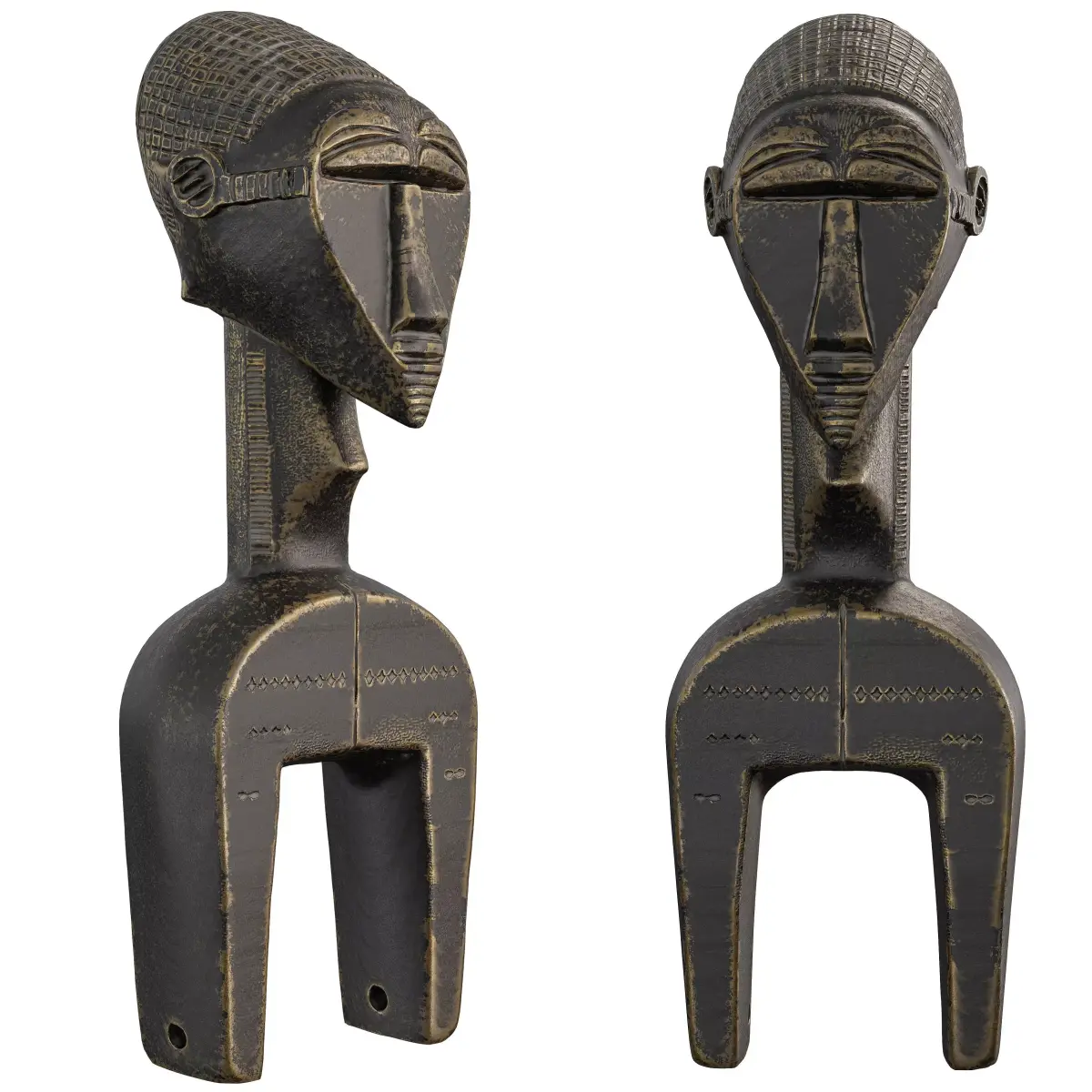 Name: West African Heddle Pulley Figure StatueType: modelFormat: 3Ds Max 2013Export: FBX, OBJRender: VRay (5.x), Corona (9)Polys: 16422Verts: 16415Matclasses: VRayMtl,_CoronaPhysicalMtlUnits: CentimetersDimension: 33.94 x 35.31 x 98.66Date: 2025.8.28This premium 3D model is a highly detailed and realistic representation of a traditional heddle pulley figure from West African art. The sculpture is rendered with a dark, aged wood or metallic texture, giving it a rich, worn appearance with subtle signs of age. The model captures the distinctive, elongated form of a figure with an abstract head, all meticulously hand-carved. This unique and captivating asset is perfect for adding a touch of cultural authenticity, history, and artistic craftsmanship to any scene. High-Quality Sculpt and Textures: The model is created from a high-resolution sculpt, capturing the bold, stylized forms and the intricate texture of the aged material. The PBR (Physically Based Rendering) textures are expertly crafted to provide a photorealistic look, with accurate maps for color, roughness, and normal detail that highlight every carving mark.