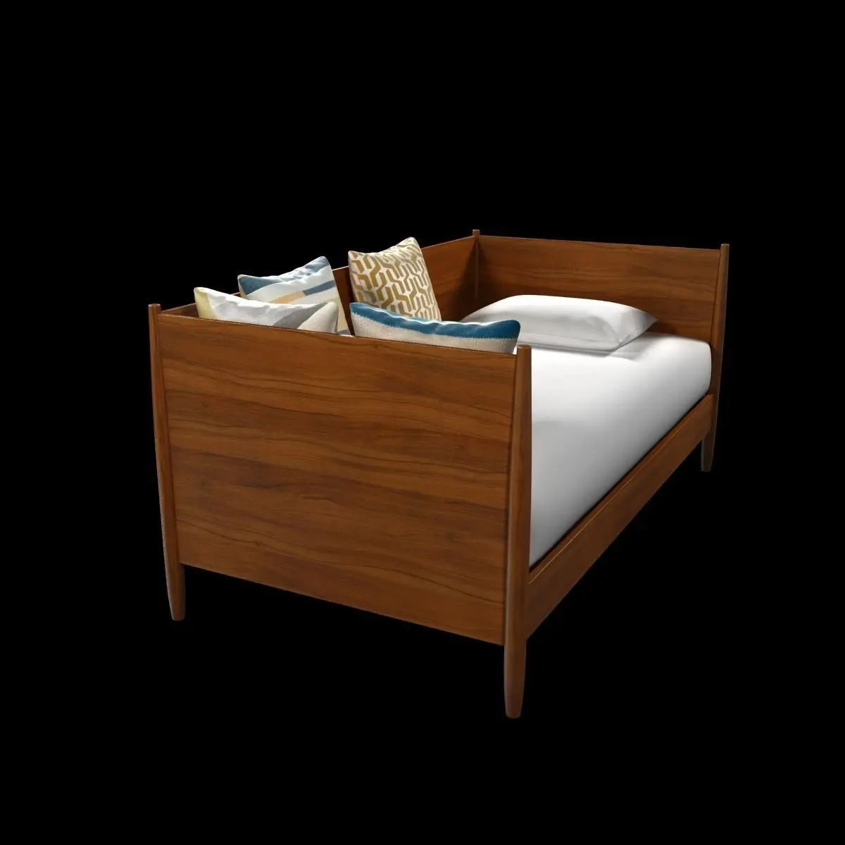 Simple and sophisticated. The Mid-Century Daybed brings 50s and 60s style to guest rooms or living rooms. With its streamlined silhouette and gently tapered legs crafted of FSC-certified solid wood, its refined profile suits any style. 78"w x 42"d x 35"h.FSC-certified solid eucalyptus wood with Acorn-stained veneer.The FSC promotes responsible forest management. Learn more.Solid pine support slats included.Recommended for use with twin mattress (not included).Imported.See what west elm is doing to help you get a little greener.Overall product dimensions: 78"w x 42"d x 35"h.