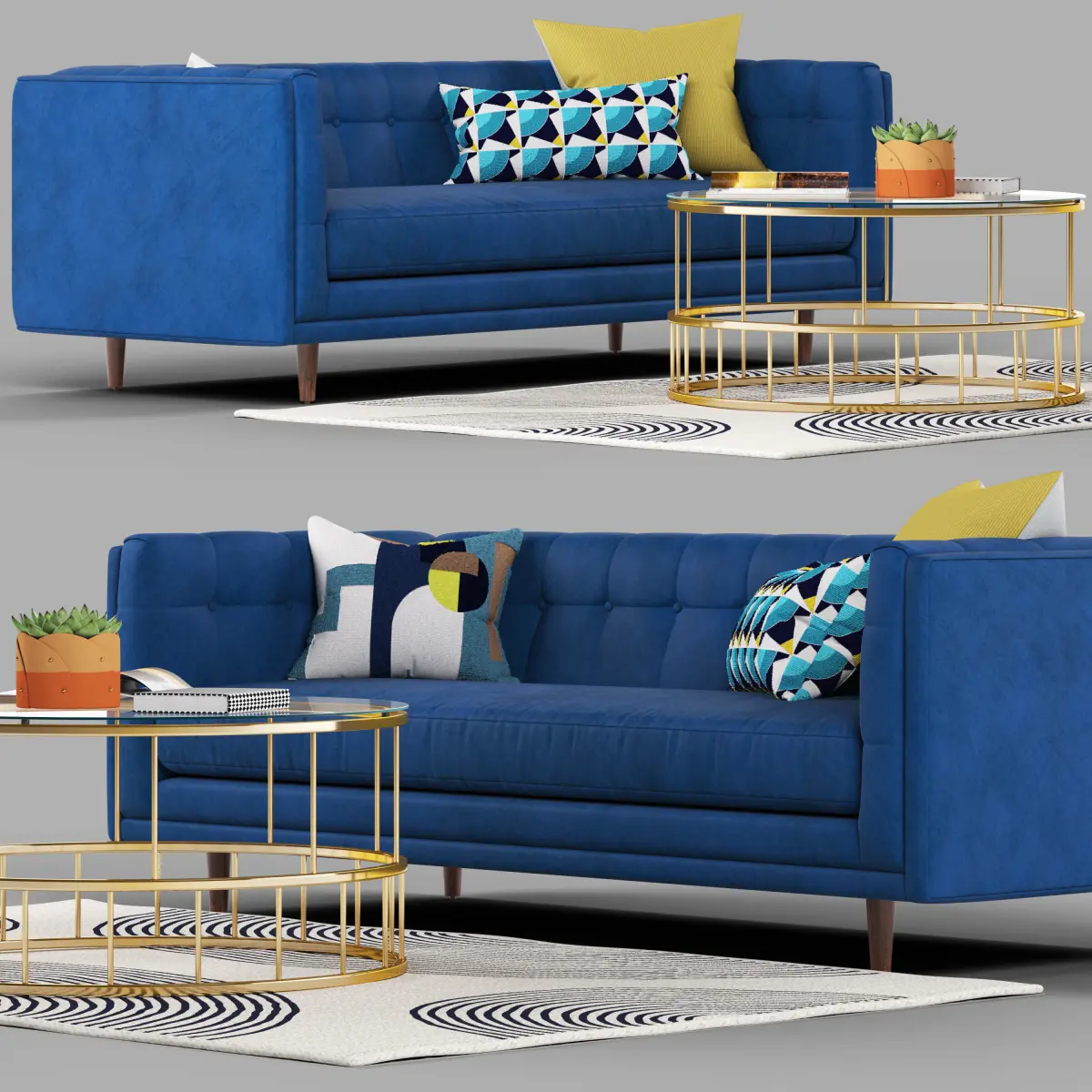 208 cm w x 86 cm d x 75 cm h.Hand-upholstered.Button-tufted back and arms.Solid wood legs in a Pecan finish.Solid oak and engineered hardwood frame.All wood is kiln-dried to prevent warping.Sinuous springs provide cushion support.Seat and back cushions have fibre-wrapped foam cores.Loose, reversible cushions.Cushion covers unzip to remove.Your purchase of handcrafted items helps preserve craft traditions worldwide. Learn more. Dimensions & More InfoDETAILED SPECIFICATIONS