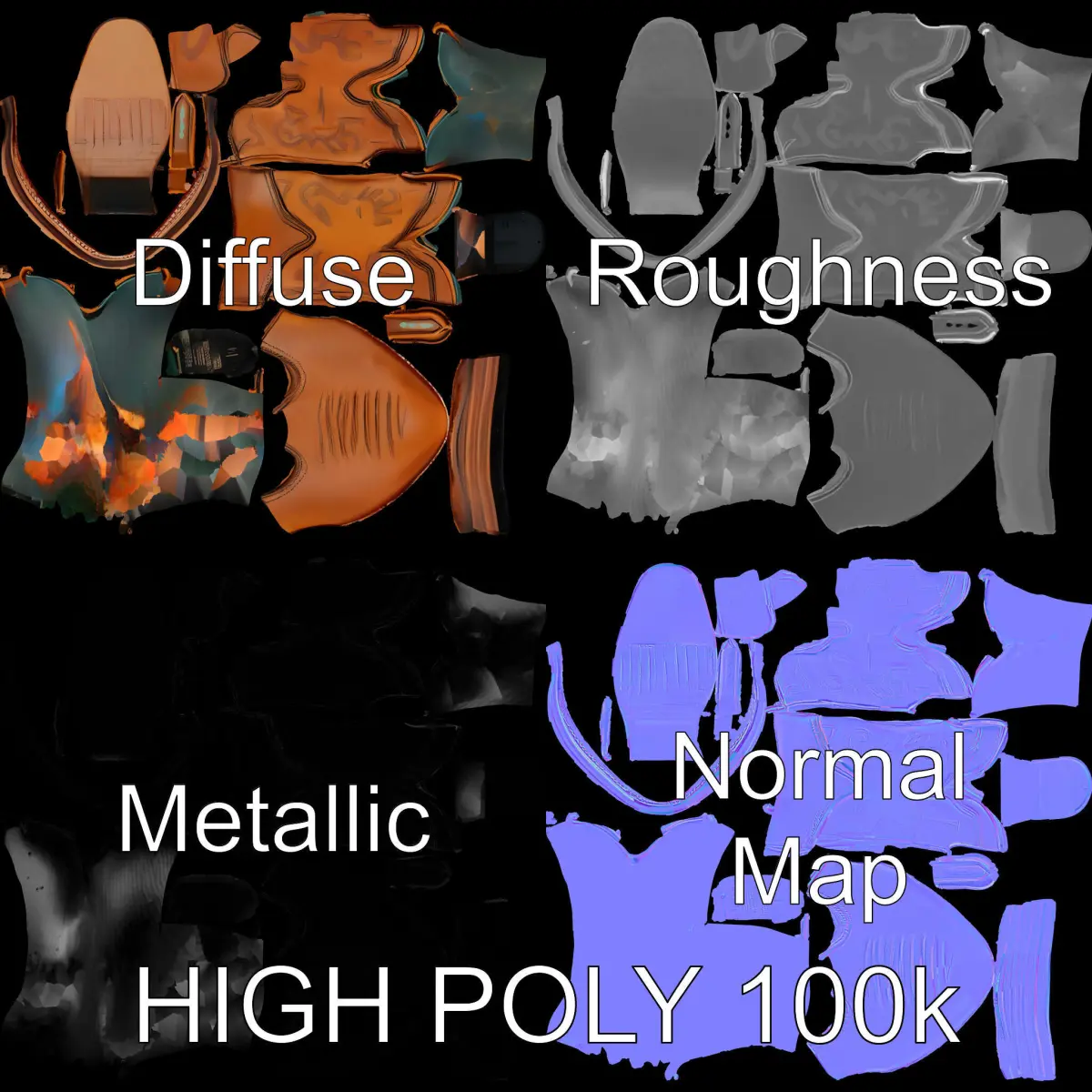 This Western Cowboy Boot 3D Model Pack offers detailed boot models at three levels of detail: low-poly for mobile applications, middle-poly for environments, and high-poly for production rendering. Ideal for use in animations, gaming, virtual museums, and fashion design previews, these models are fully compatible with software like 3ds Max, Maya, Blender, and engines such as Unity and Unreal. The textures, including PBR, Diffuse, NormalMap, and reflection/roughness/metallic, ensure rich visual quality and are 4096*4096 in size. All models are accurately unwrapped with no overlapping UVs, providing seamless integration into any project. The models are crafted to emulate luxury leather textures and intricate stitching, capturing the essence of authentic Western boots. Perfect for realistic simulations and dynamic presentations. Please like and comment if you enjoyed this model. The first image is the reference used for creating the 3D model. It is important to carefully evaluate the quality of the model by examining the preview images that display the topology and polygonal mesh. These previews (WIRE and WEB 3D Preview) clearly demonstrate how accurately the model matches the original reference and how well the geometry has been executed.