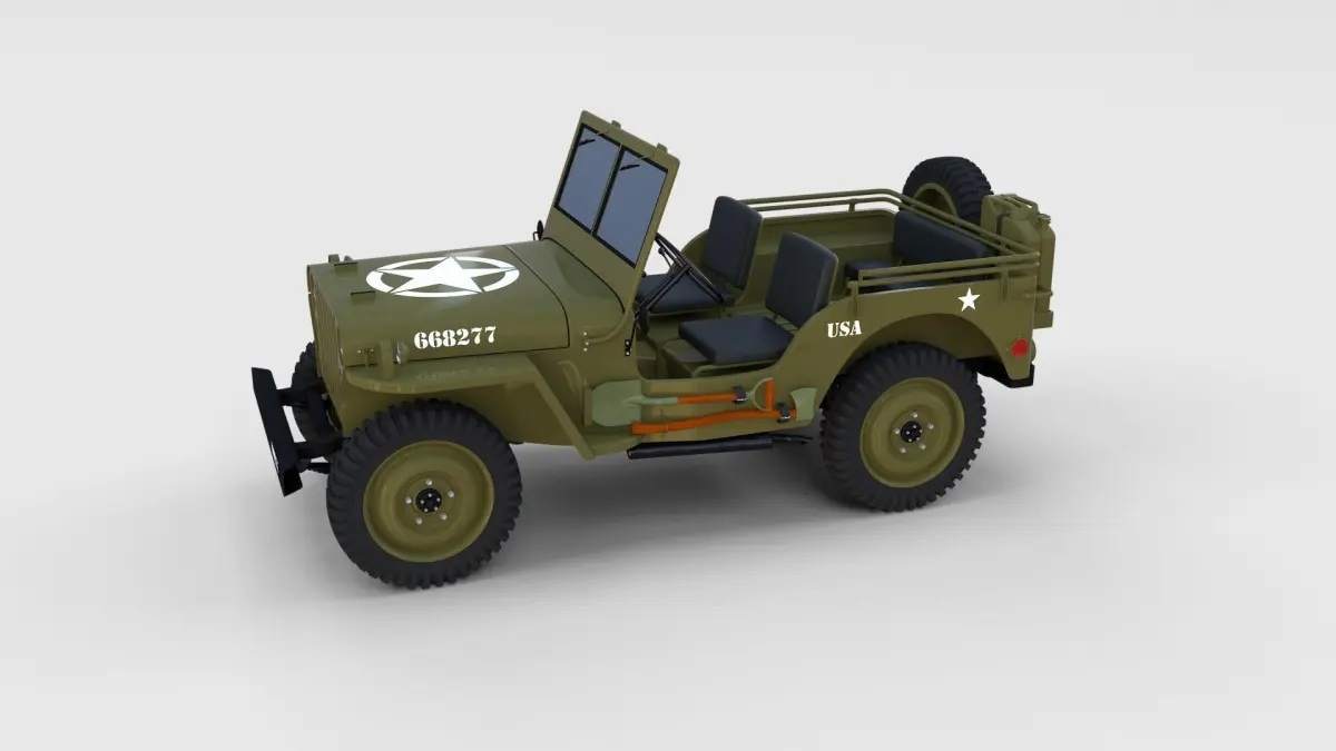 3D model pack consisting of the following WW2 items:-Tiger Tank Early-Jeep Willys MB-Thompson 1928