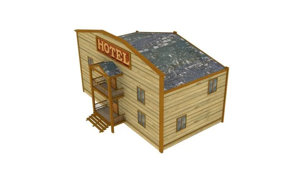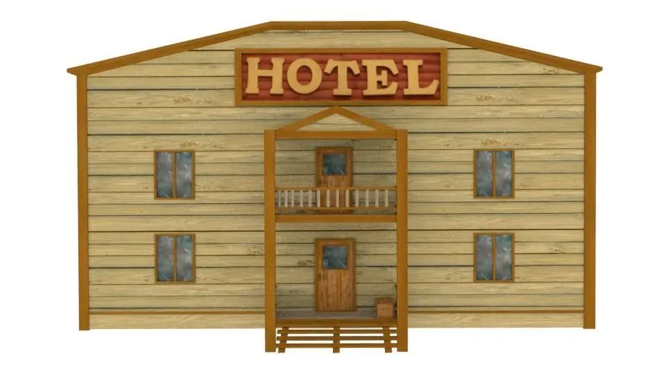 It is a simple exterior of the wild west hotel.F:1118V:1433