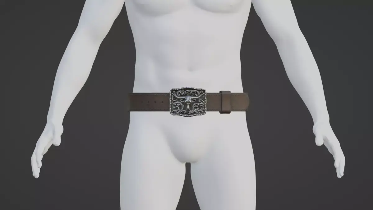 Western Leather Belt with Longhorn Buckle – Game-Ready 3D Model for Unity, Unreal Engine & Blender