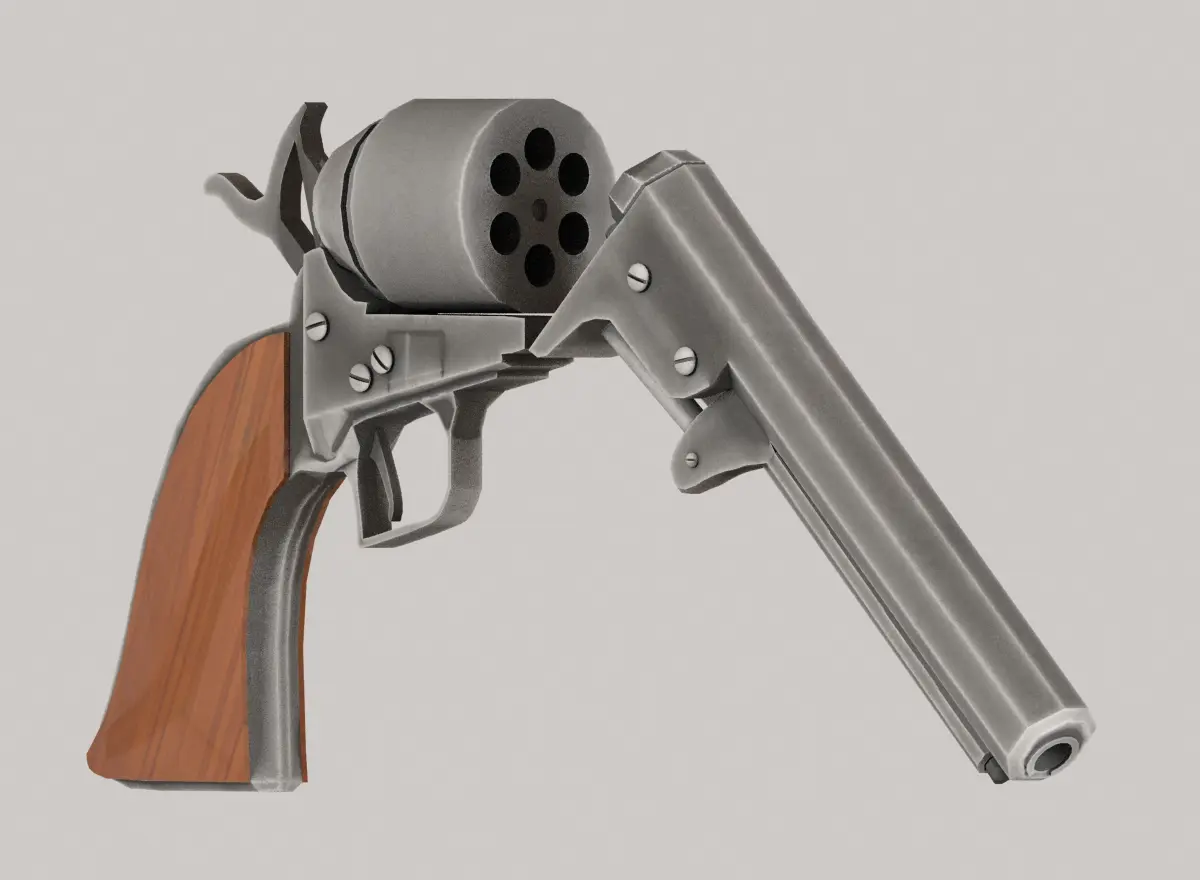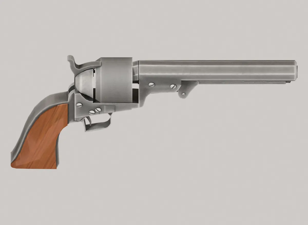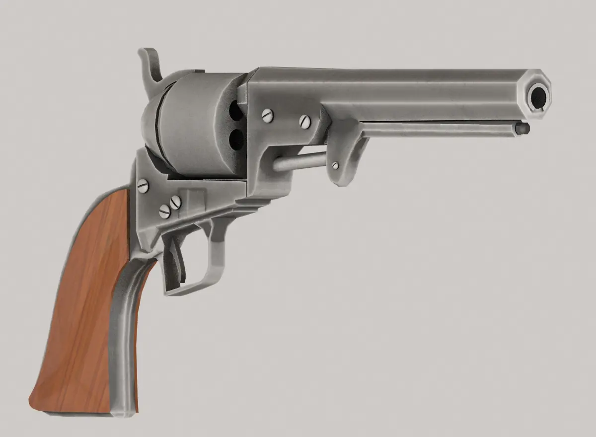 Realistic Low-poly model of western shotgun revolver with PBR textures (4096x4096). Rendering in V-ray.