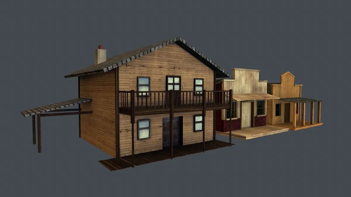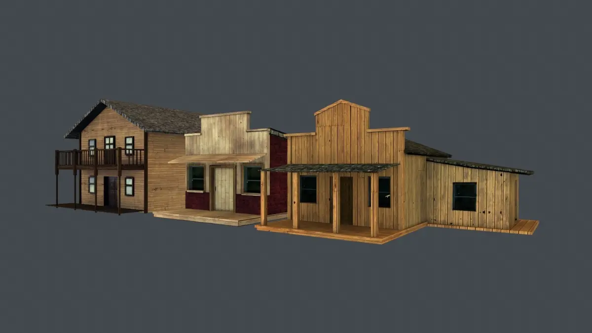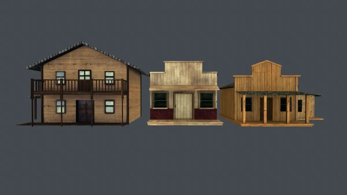 A set of 3 Western styled buildings ready to be used in any game engines. Exterior only. Interior is not modeled. Models are fully unwrapped, non-overlapping UVs.2048x2048 .TGA textures (diffuse only) are included.