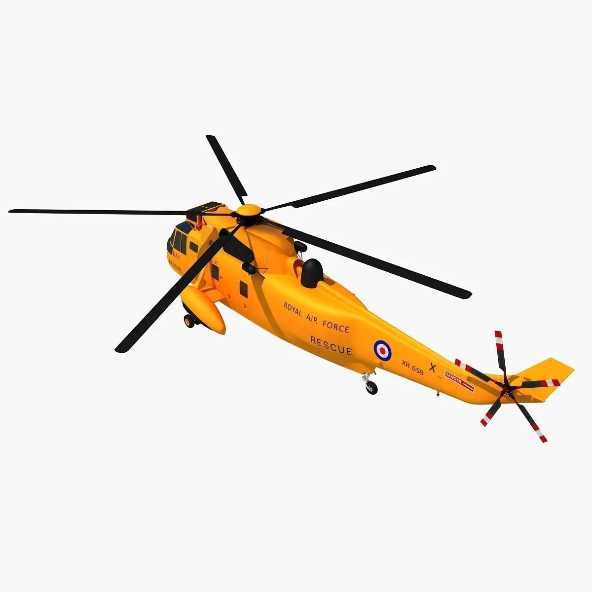 High detailed 3d model of Westland Sea King helicopter.Textured as Royal Air Force.Model is high resolution and perfect for close-up detailed renders.Layered Photoshop CS3 file for the main helicopter also included in a separated file, if you need to edit or add any details. A file is ( 4096 x 4096 ) pixels.