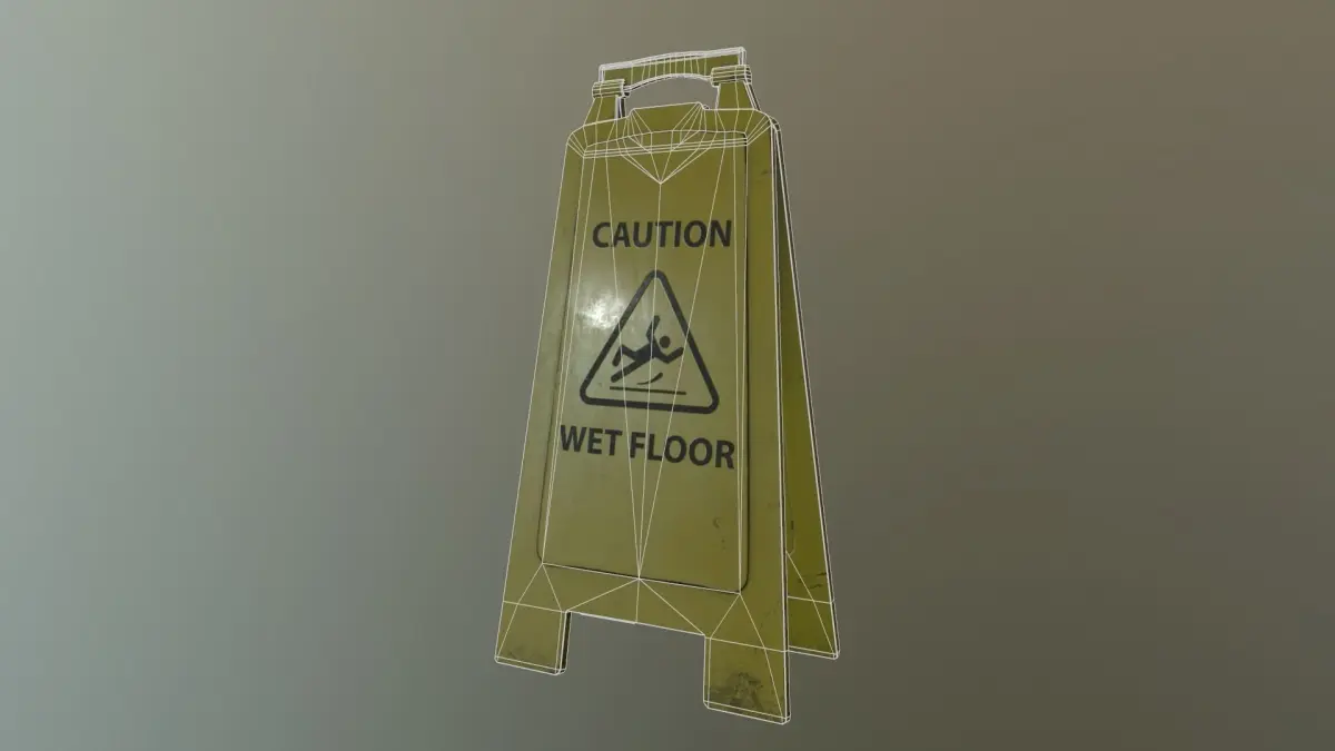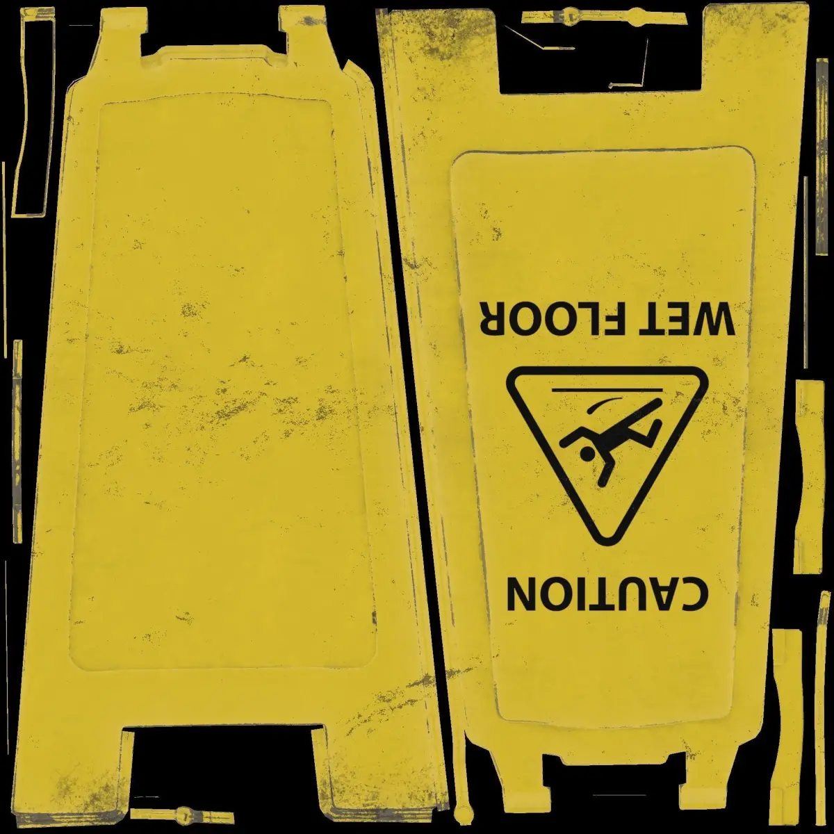 Simple model of used Wet Floor sign. PBR Textures RMA (RedChannel: Roughness Green Channel: Metallic Blue Channel: AO) Albedo Normal