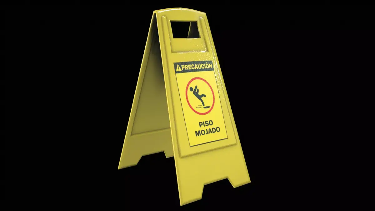 High-quality realistic wet floor warning sign commonly used in hospitals, hotels, shopping malls, offices, airports, schools, and commercial interiors.