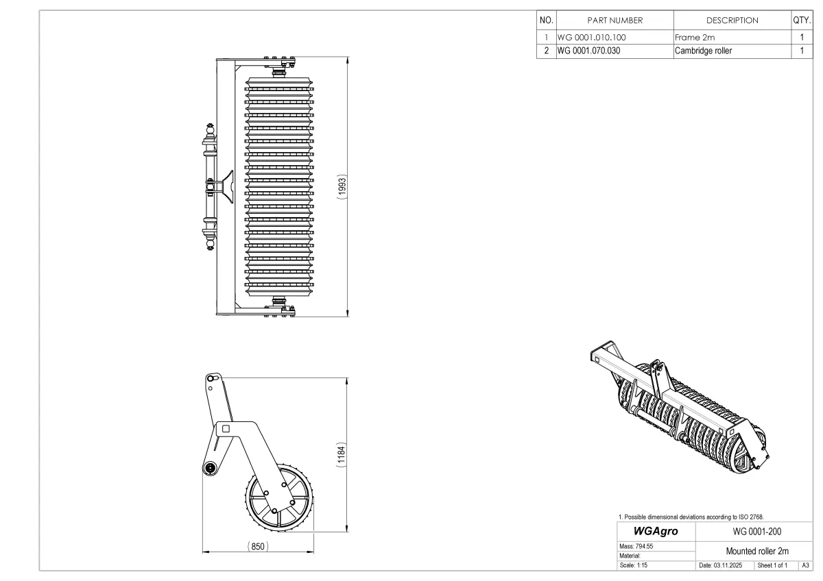 - WG 0001-200 - mounted multipurpose roller 2.0 m with fixed frame