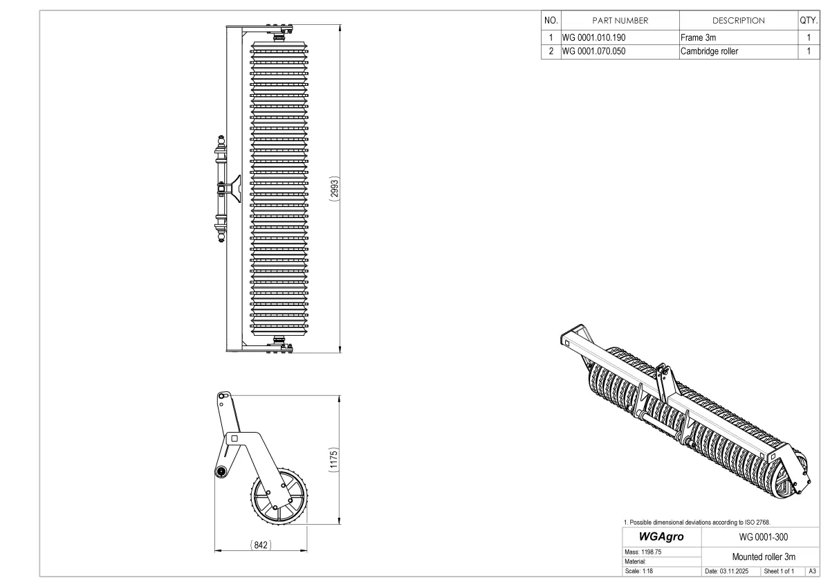 - WG 0007-300 - mounted multipurpose roller 3.0 m with fixed frame