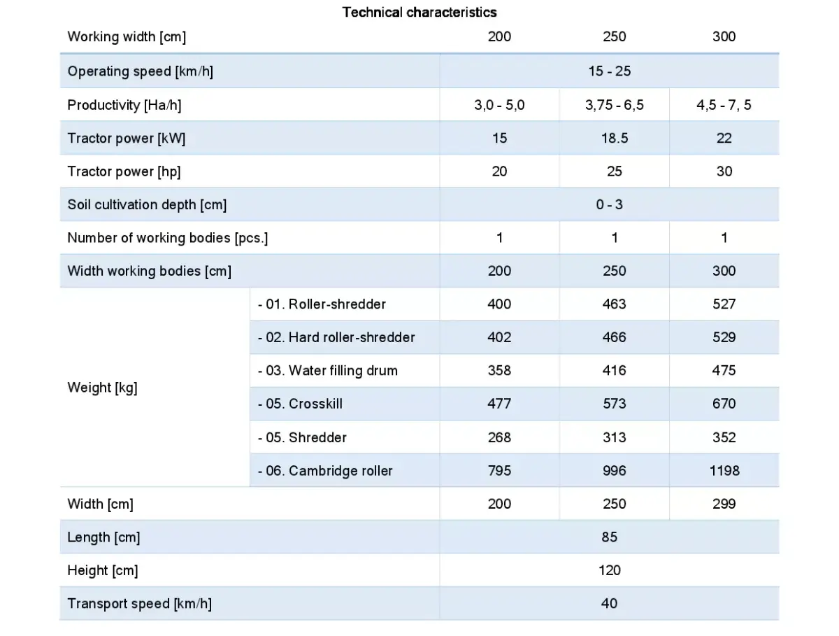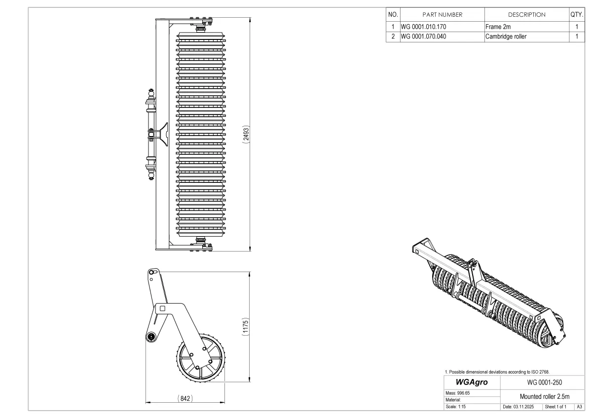 - WG 0001-250 - mounted multipurpose roller 2.5 m with fixed frame