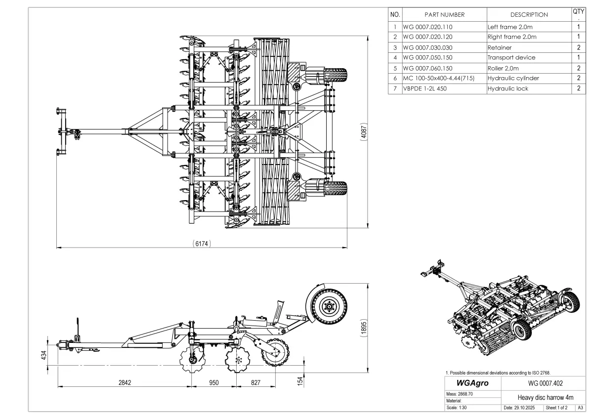The semi-mounted heavy disc harrow is designed for resource-saving soil cultivation for cereals, industrial, and fodder crops. It efficiently controls weeds, crushes crop residues, levels the soil, and provides light compaction. Suitable for soil with up to 27% moisture and hardness up to 3.5 MPa, as well as fields with high residue content, it ensures consistent and high-quality preparation of the seedbed. A reliable tool for medium and large-scale farming operations.