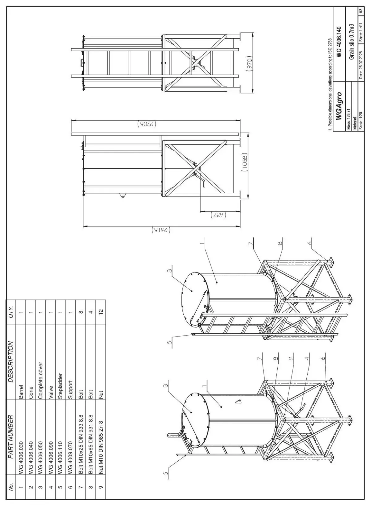 Contents of the package: Full 3D assembly. Separated parts.Detailed dimensions.Material indications.Assembly drawing with exploded view.High-quality STEP (.step), IGES (.iges), STL (.stl) files. Complete technical drawings in PDF and DWG