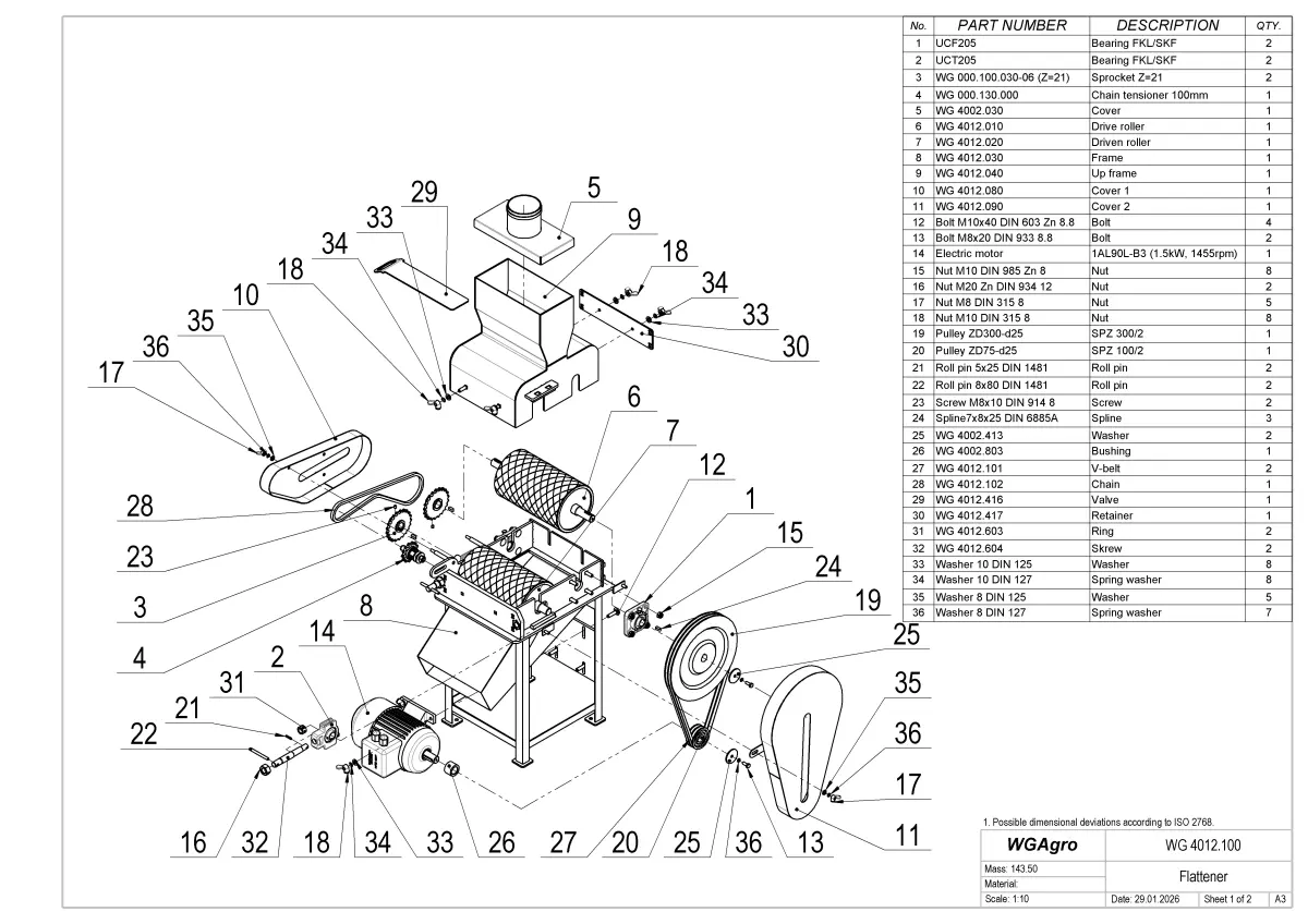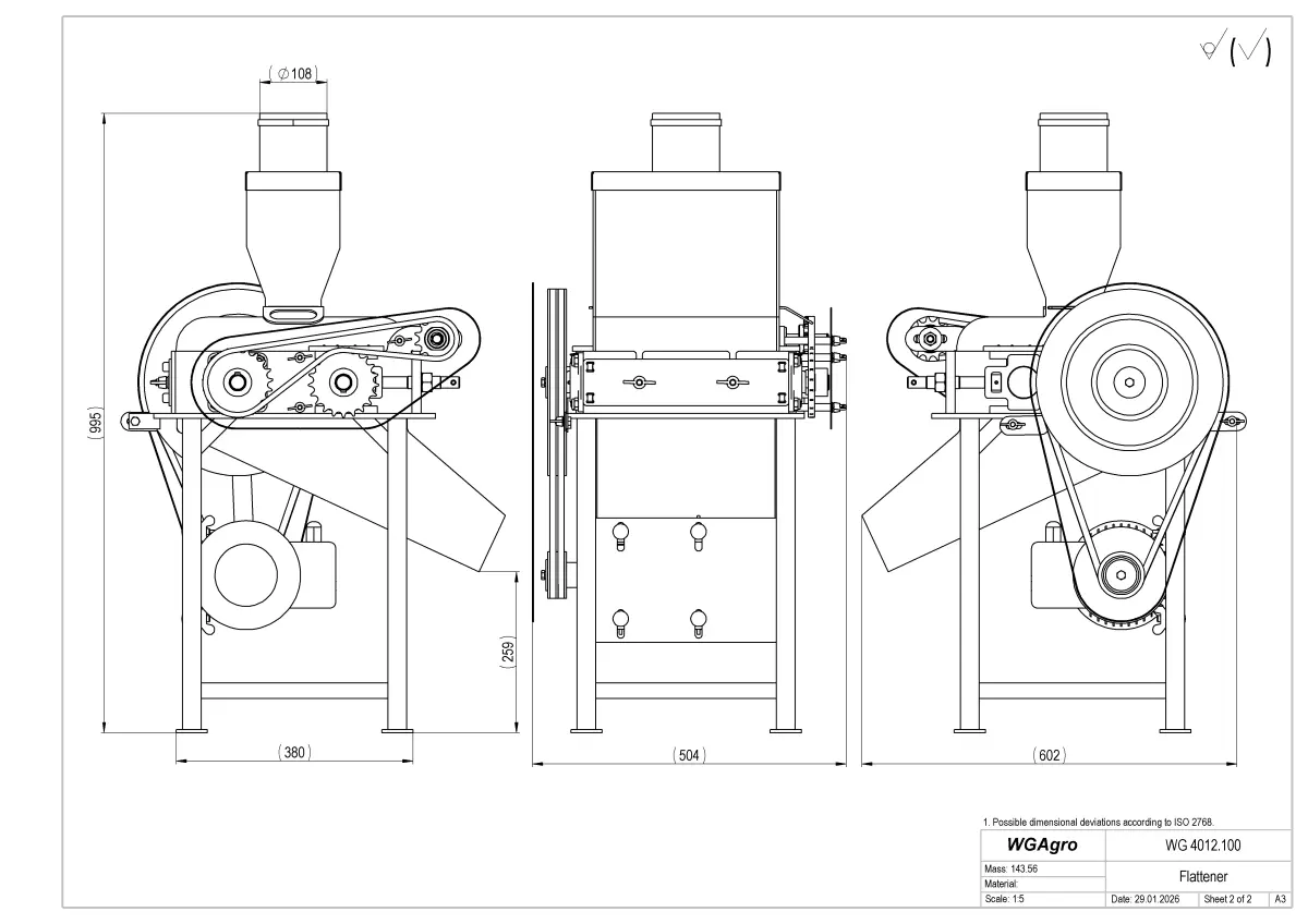 The grain flaker is designed for mechanical processing of grain by flaking, which improves digestibility and increases feed value. The equipment is ideally suited for farms, livestock operations, and small agricultural enterprises.The machine is used for flaking: wheat, barley, corn (maize), oats, rye and other cereal grains.