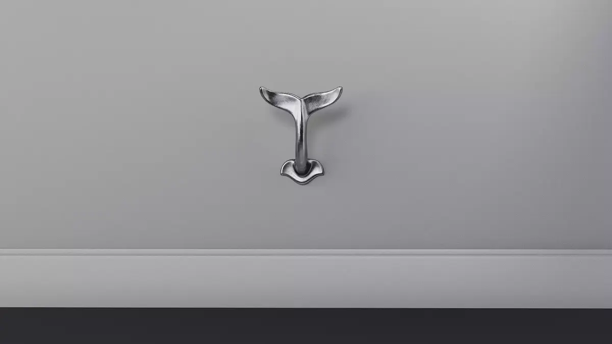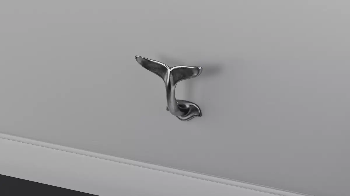 Whale Tail Hook Metal Decor. Subdivision-ready.