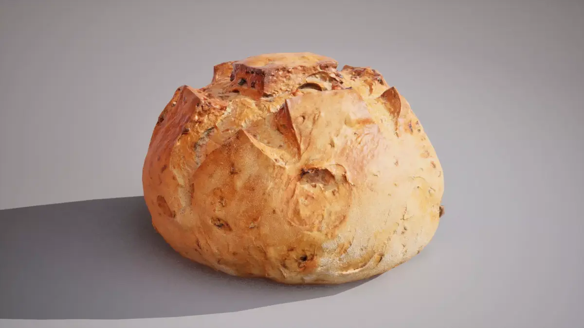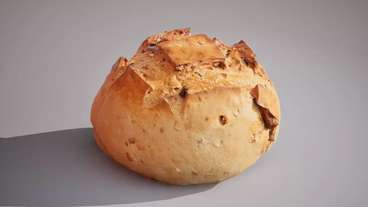 This is a low‑poly 3D model of wheat bread with nuts, ready for use in games, VR/AR applications, and real‑time rendering.