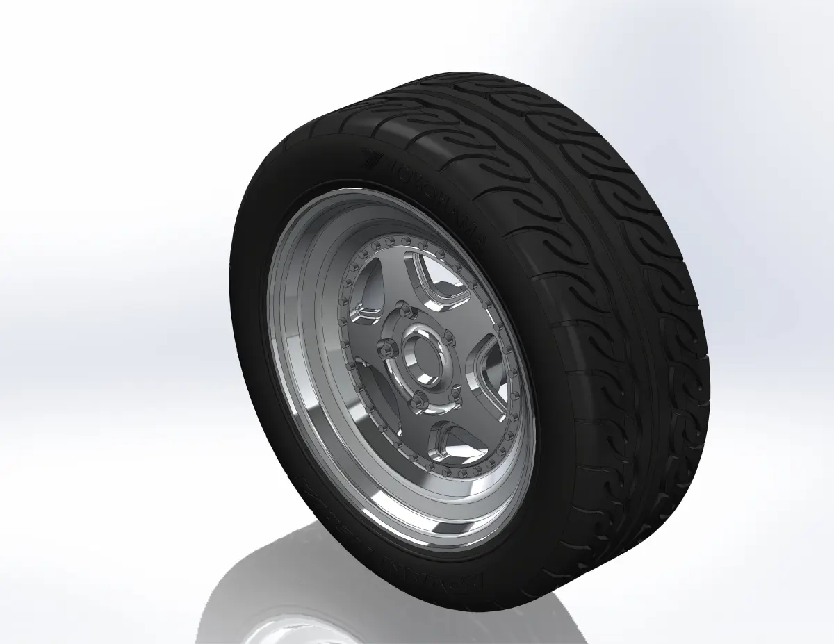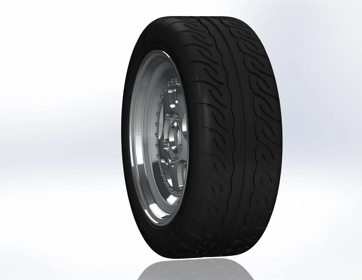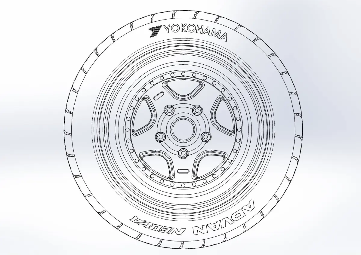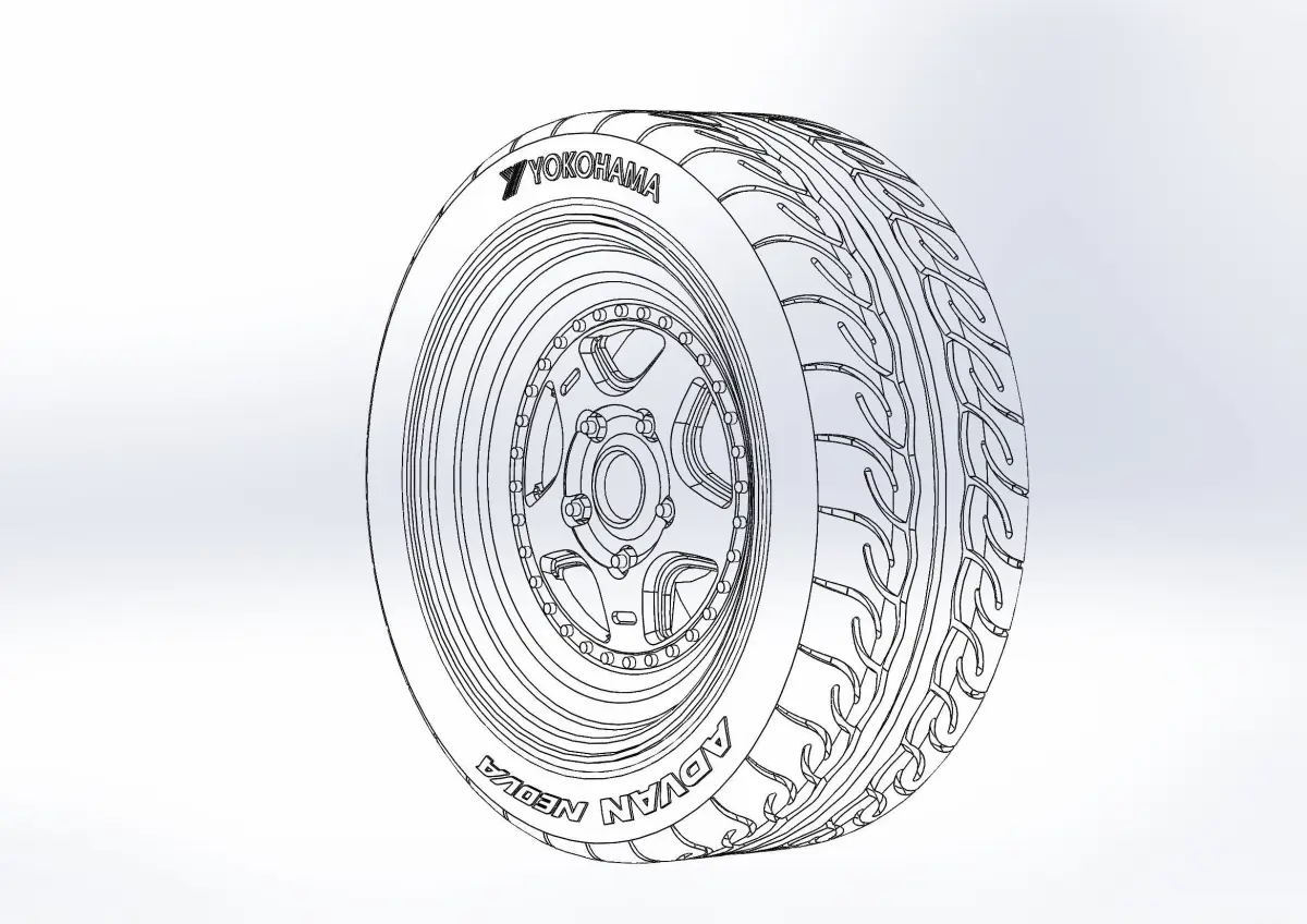 3D-printable wheels (rims, tyres and decorative caps separately) for scale model . Rim - PLS 16x8; Tyres - YOKOHAMA ADVAN NEOVA AD09 225/45 R16
