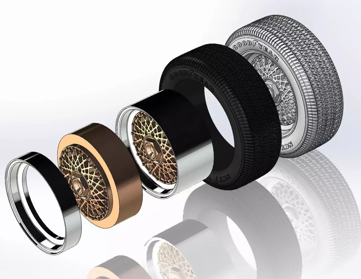 3D-printable model of a wheel (including the rim and tire — both as separate parts and as a single combined piece) for your scale or RC- model. Rims style - BBS RS 16x7; Tyres - 225/55 R16 with a detailed tire tread pattern