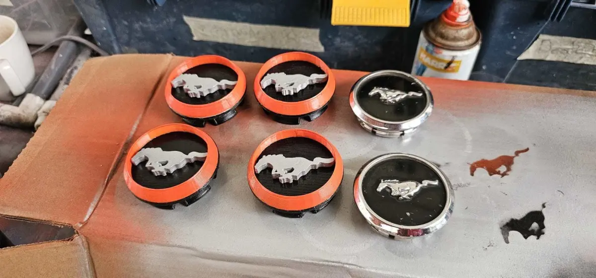 Wheel center for most Mustangs after year 2005. Make sure you check the diameter before printing as this print is 2.5 inches and fits most mustangs.