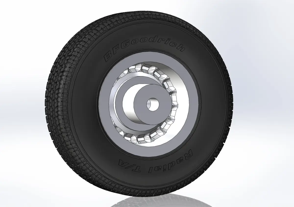 3D-printable wheels (rims and tyres separately) for your scale- or RC-model. Rims - 15x8; Tyres - 255/70 R15 with a detailed tire tread pattern