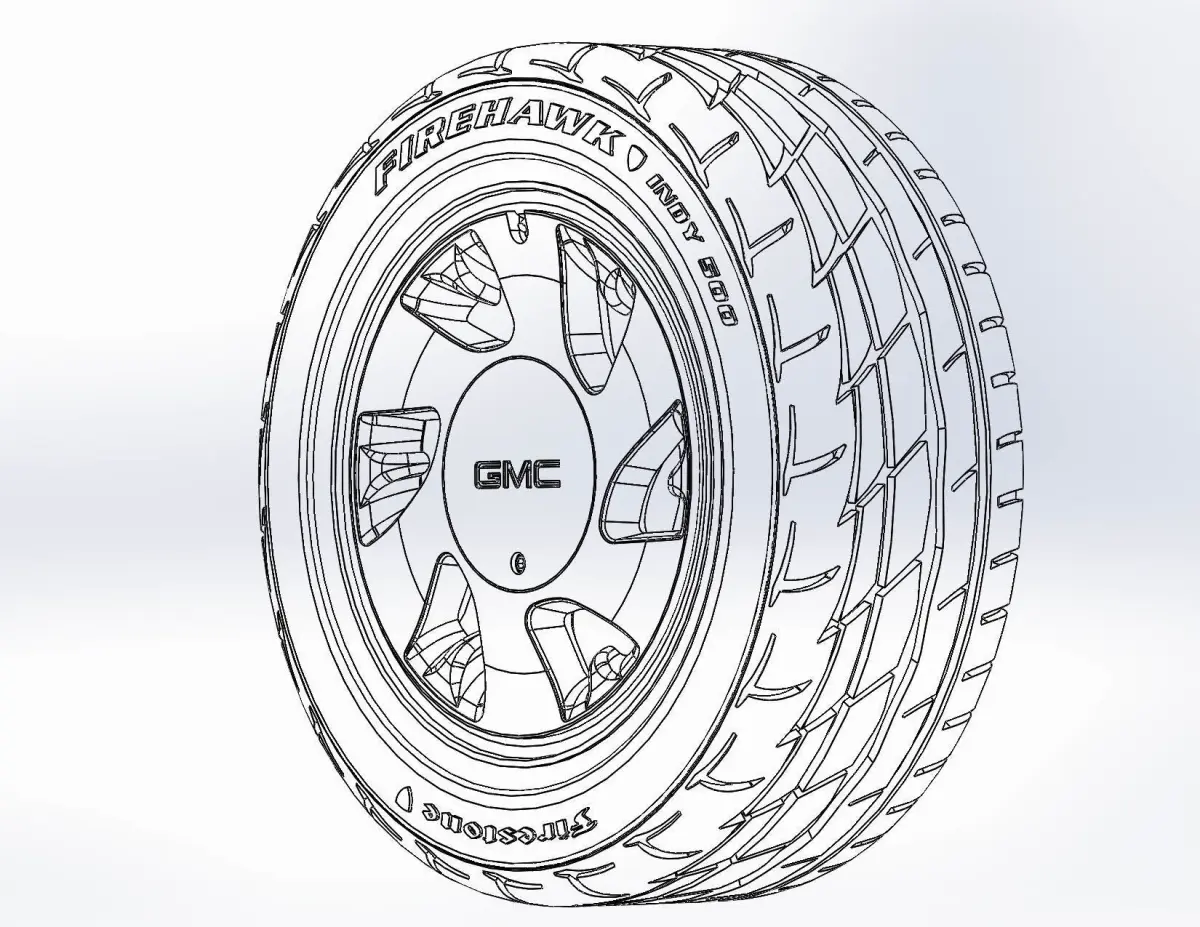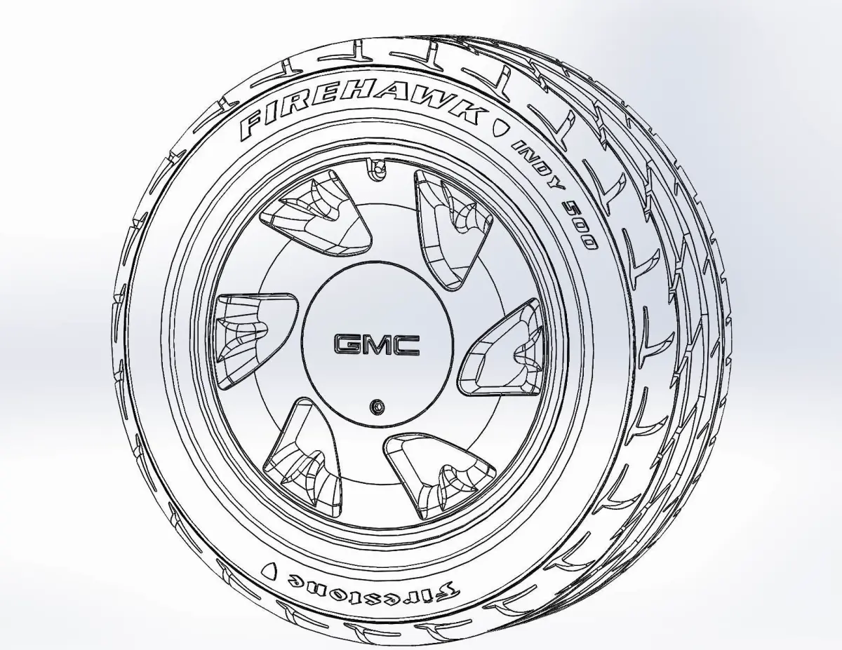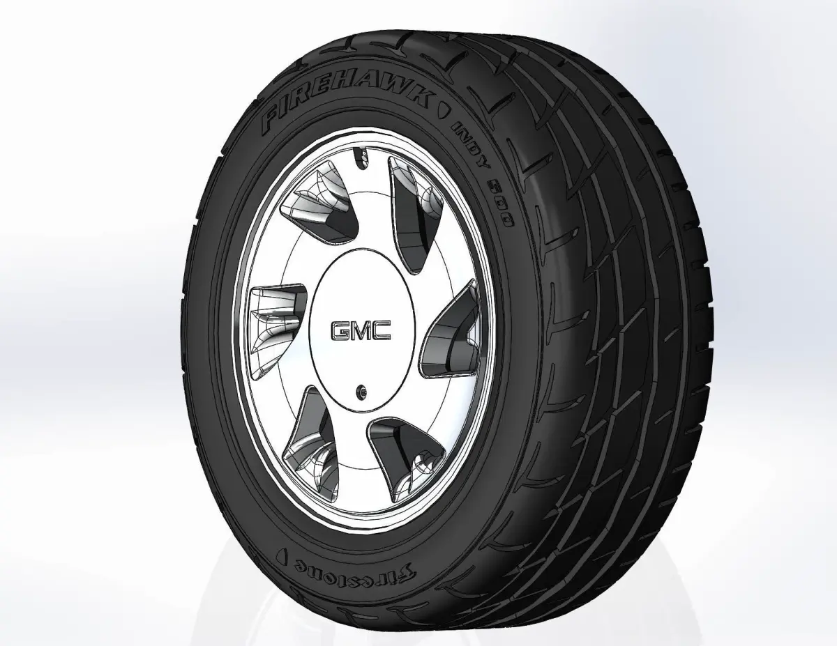 3D-printable model of a wheel (including the rim, decorative hubcap, and tire — both as separate parts and as a single combined piece) for your scale or RC- model of GMC Typhoon 1993. Rim OEM: 16x8; Tyre - 245/50 R16 with a detailed tire tread pattern