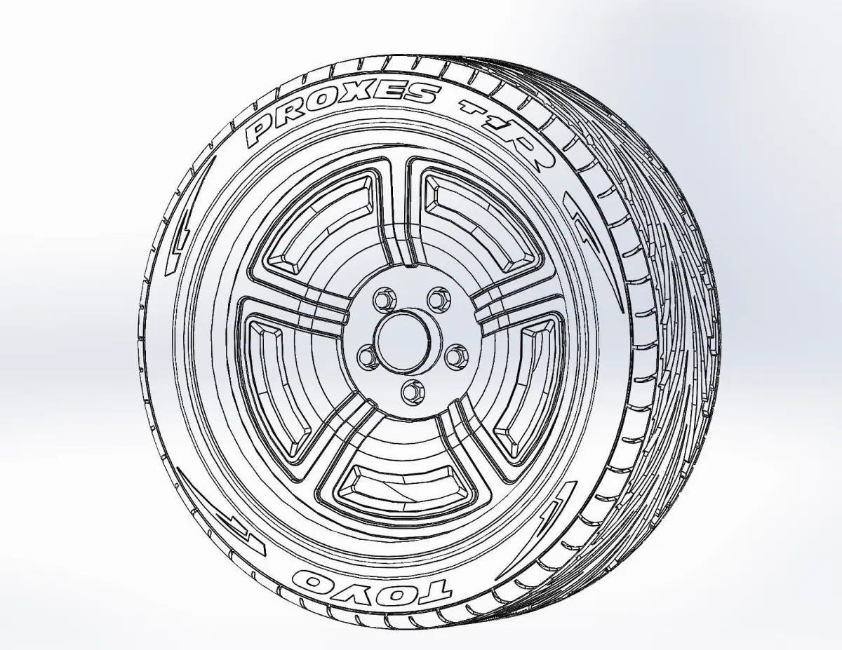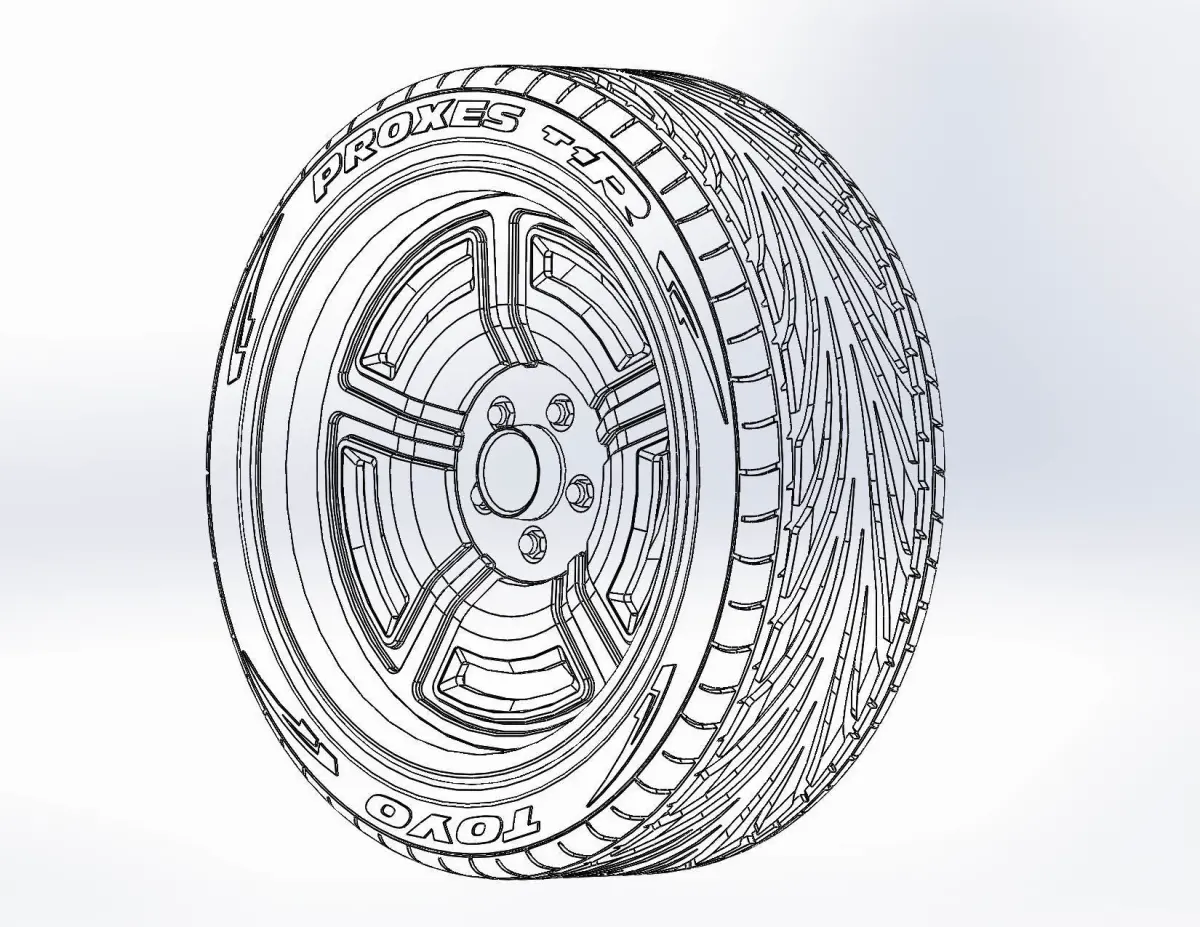3D-printable wheels (rims and tyres separately and as one body) for your scale or RC- model . Rims style - Forgeline Galaxie, 18x8; Tyres - 235/40 R18 with a detailed tire tread pattern