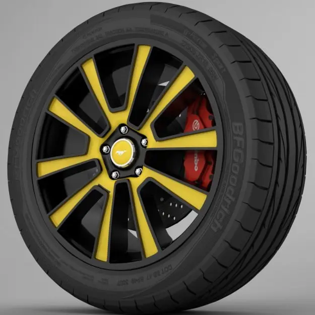 High detailed model of GT500 rim with Tyre, caliper and brake disc. Model is made in 3ds max 2009 and rendered in Vray 1.53