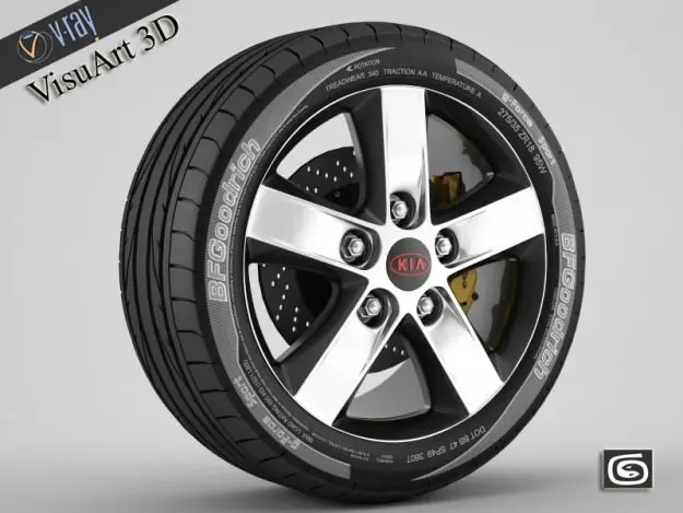 High detailed model of Kia Ceed rim with Tyre, caliper and brake disc. Model is made in 3ds max 2009 and rendered in Vray 1.53