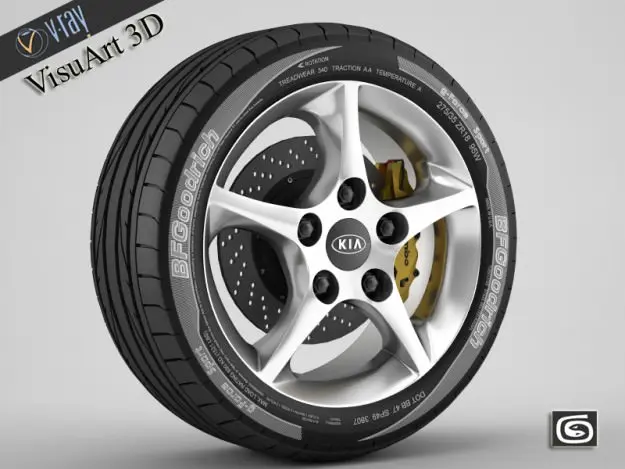 High detailed model of Kia Ceed rim with Tyre, caliper and brake disc. Model is made in 3ds max 2009 and rendered in Vray 1.53