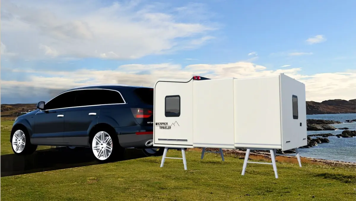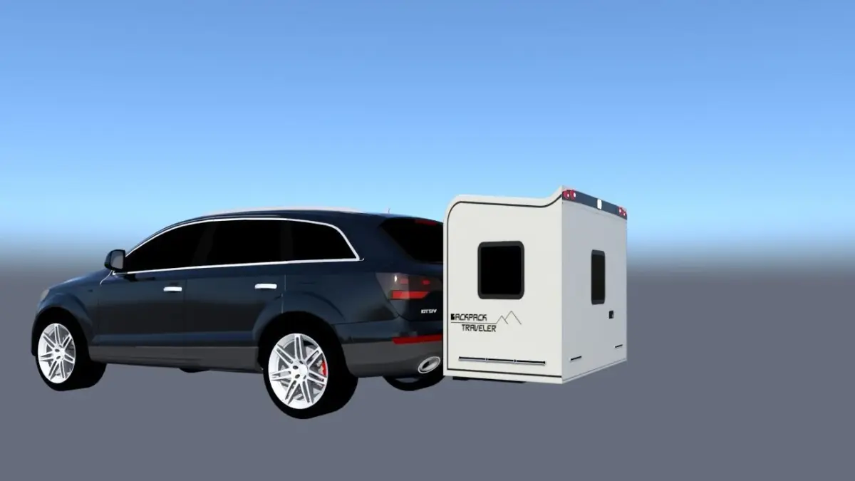modern ,unique designed wheel- Less trailer.CAR backpack for easy travelling.Always have a room ready with the backpack traveller- Expandable Wheel-Less Trailer. By simply hitching this gadget to your vehicle, you’ll have somewhere to sleep wherever you go. When you close the backpack traveller, it offers more than 60 cubic feet of watertight and secure storage space for your equipment. In addition, it provides a full-size door so you can easily load cargo. When you open it, the patented backpack traveller turns into a sleeping area with more than 135 cubic feet of comfort. Suitable for up to three adults, the backpack traveller is bigger than a queen size bed. It offers low height for easy entry but provides plenty of head space so you can comfortably sit up. Wheel-free and completely suspended in the air, the backpack traveller hitches to any vehicle with at least Class 2 hitch.Model is done with sketch up and rendered with v-ray. All textures equipment is in high resolution,have been checked and are included in scene.Textures are compressed in zip file.Model is easy to manipulate and ready to render with v-ray.